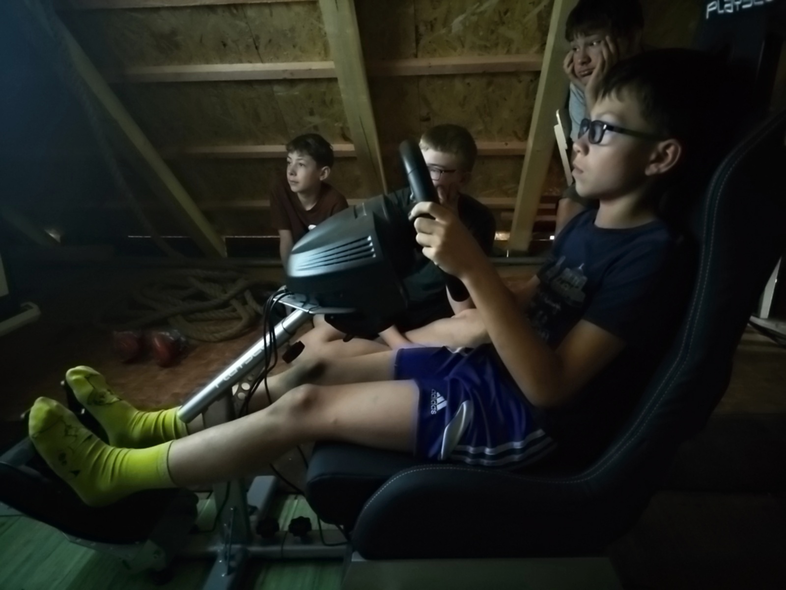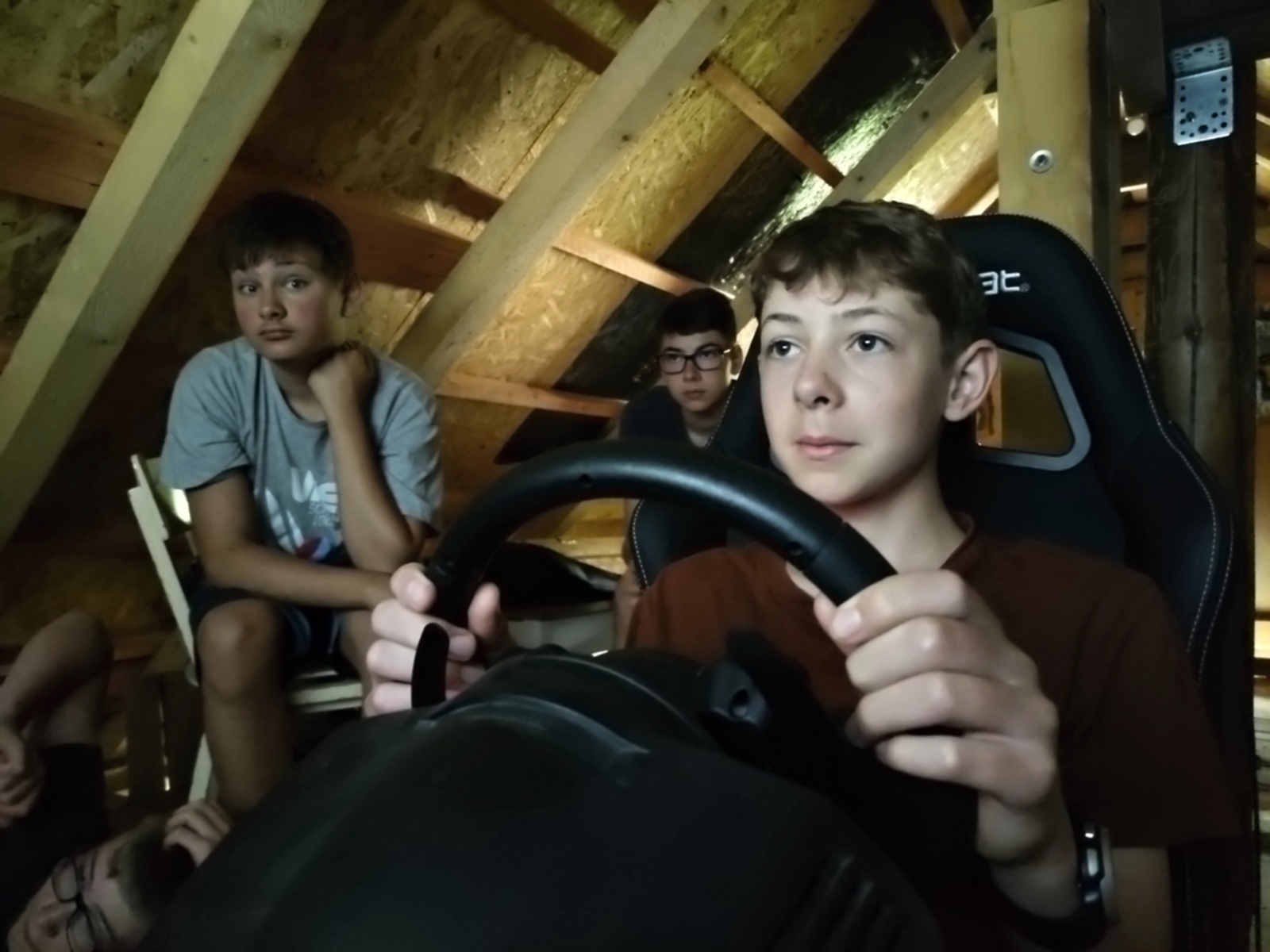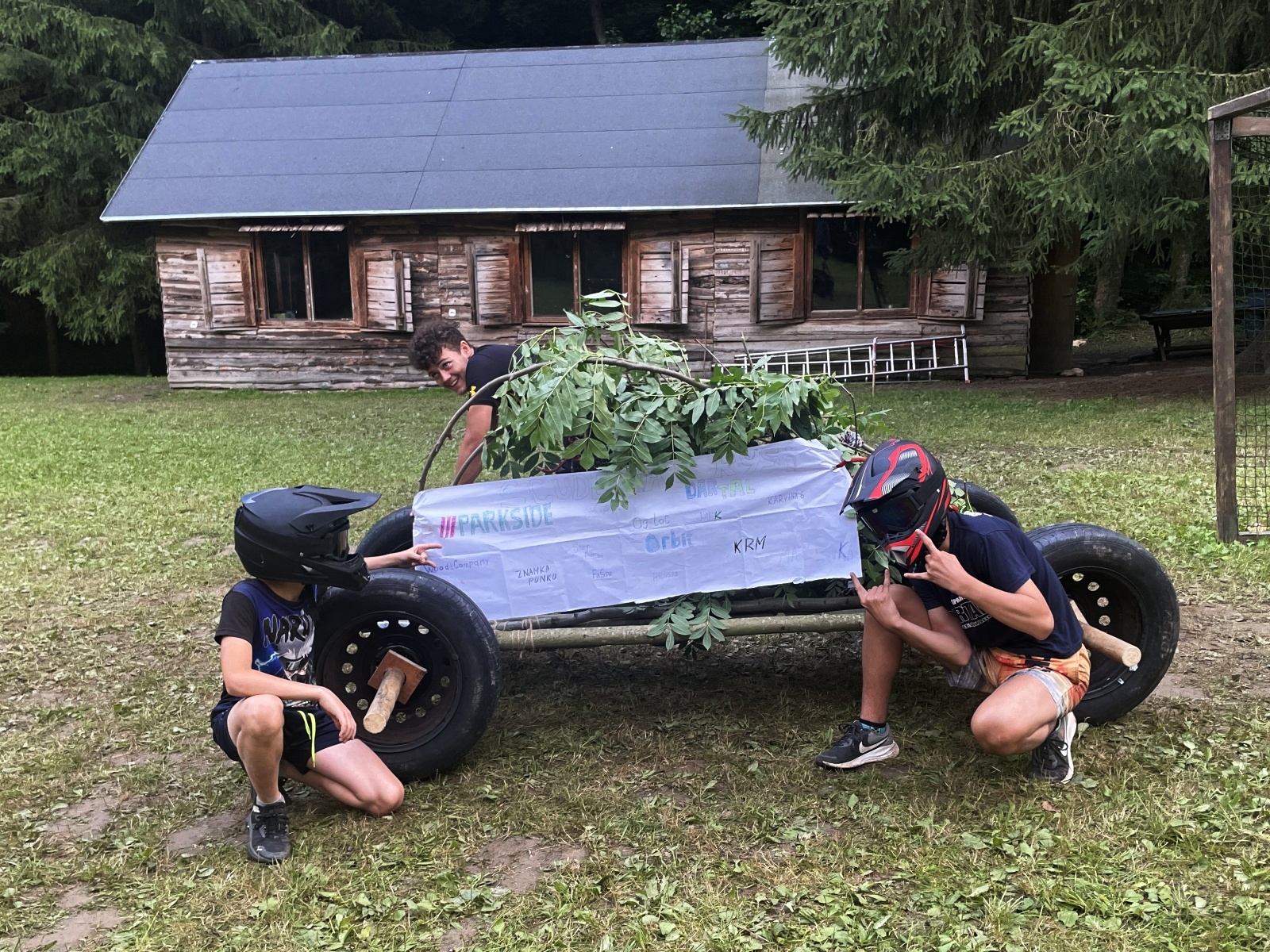 - Při zkoušení to u Lišáků vypadalo na totální kolaps. Nejprve zkoušeli dva piloty – Sevaka (ten byl moc těžký) a poté Domču (ten zase nedosáhl na pedály a přepadával). Teprve v momentě, kdy jako řidič usedl Theo, se jim začalo dařit. Stopky se zastavily na čase 1:20,9. Úsek se dohrává za drobného deště. Nejprve jsme schovaní pod korunami stromů, ale po chvíli to vzdáváme a stahujeme se zpět do tábora.