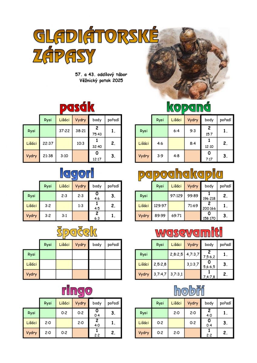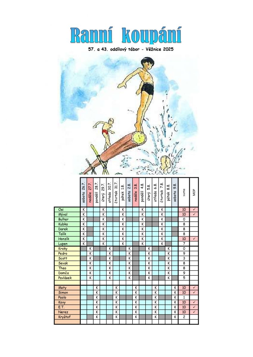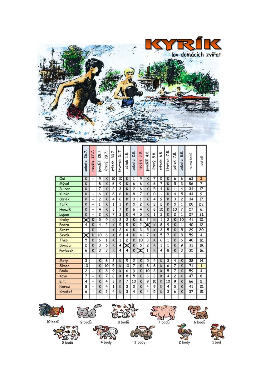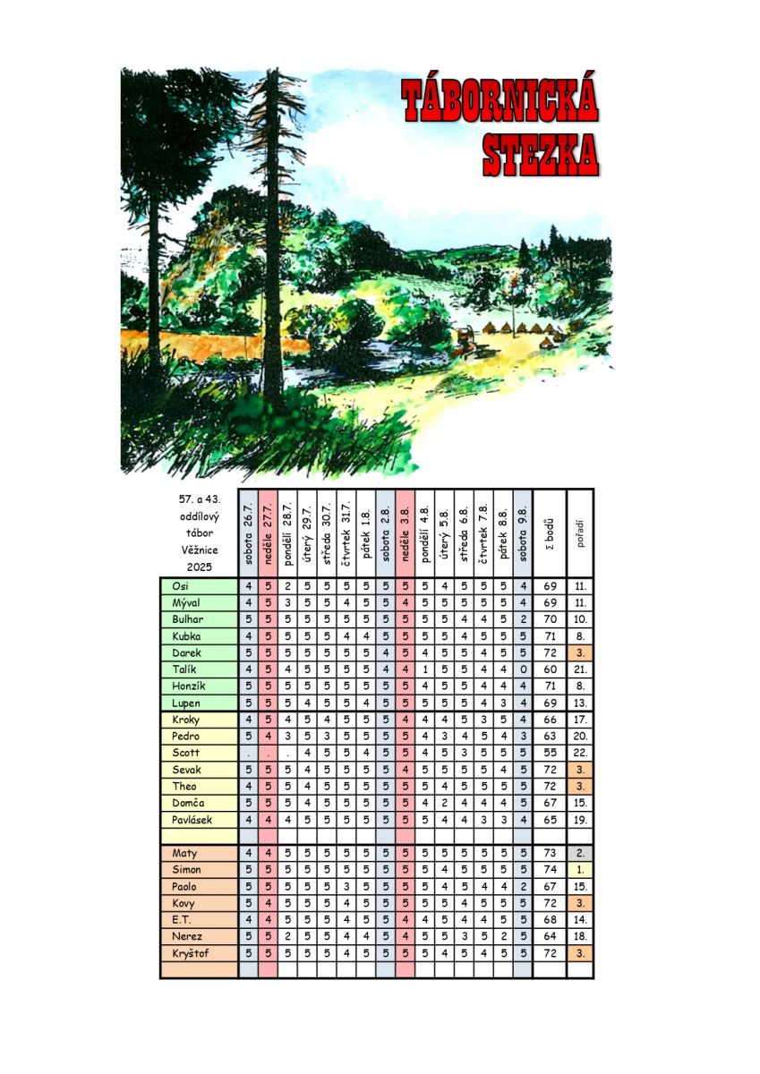 Než se pustíme do kroniky a zpracování fotografií, zveřejňujeme k prostudování táborové tabulky...