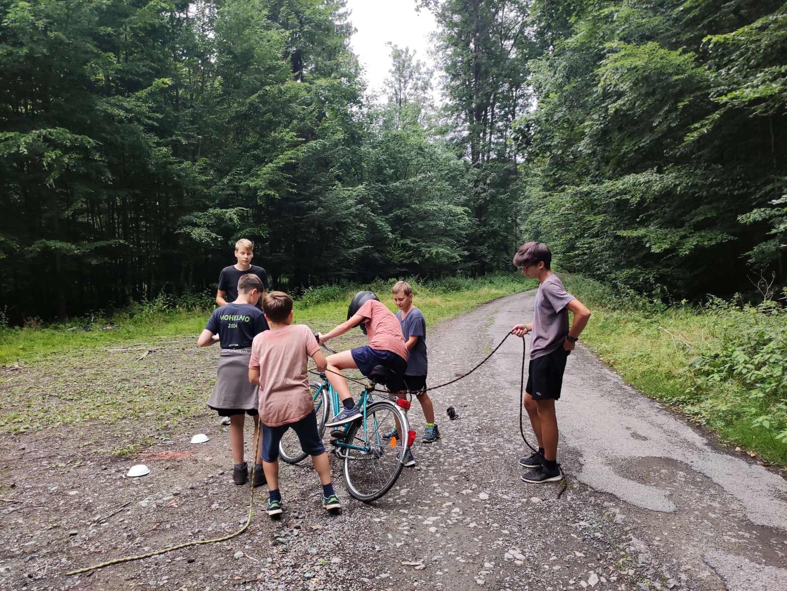 - Po poledním klidu odchází na Horní propustek k prvnímu úseku ODH „Zlomená poloosa“ nejprve kuchyňská – Lišáci. Úkolem bylo na jízdním kole, které mohlo být ovládáno poze přes navázaná lasa, projet jednoduchou vytýčenou trasu. Zádrhel ovšem byl, že „pilot“ nemohl šlapat a samotné kolo bylo zablokováno tak, že mohlo zatáčet jen jedním směrem.