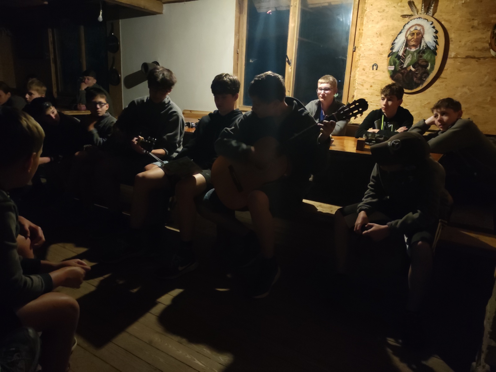 - Večer ve Tvrzi probíhá deskohraní a kytarohraní. Ke kytarové sekci se přidávají nové tváře – Kubka a Bulhar. A to je dobře, moc dobře!