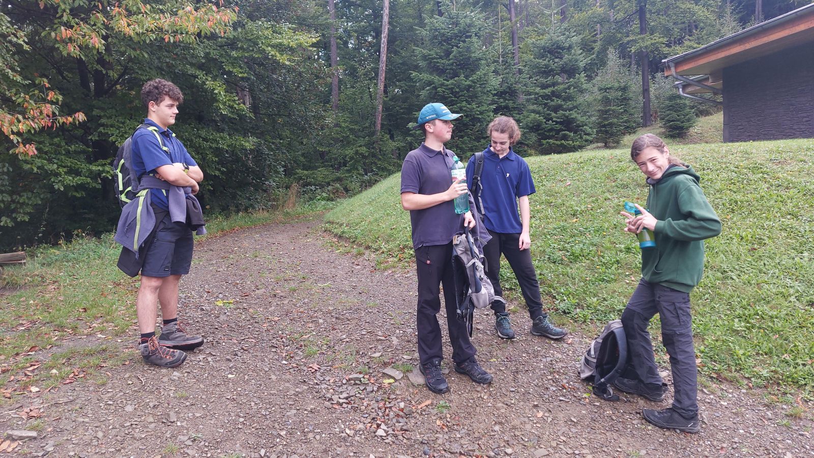 Ráno je klasicky sraz na nádraží 7:30 a Infin klasicky přijde poslední, i když tentokrát ani s takovým zpožděním. Přichází Mýval, já (Talík), Hanz, Kubka, Lupínek a Infin. Je nás 6 i když nás bude 7 protože Osi dojede vlakem z Dětmarovic. Z vlaku vystupujeme na zastávce Bocanovice a vyrážíme směr cukrárna kde si skoro nikdo nic nekoupil, ale to nevadí. Teď vyrážíme na Kozubovou. Po cestě narážíme na značky s upoutávkou na HHK a už se trochu obávám, aby se nic neopakovalo z minulé výpravy na Kozubovou. Zkratka HHK totiž může znamenat hodně věcí pro nás to ale znamená Hrozně Hrozný Kuchař nebo taky Hlavně Hnedka Kadit. Jinak se po cestě nic zvláštního neděje. Dorazíme na Kozubovou jen v trikách a zpocení i přesto že nesvítí slunce. Sedíme uvnitř a všichni si dáváme polívku. Infin zjistil že cesta bude nějakých 7,5 km a že půjdeme přes 3 hodiny, což zjistíme v polovině cesty dolů že se díval blbě a je to mnohem míň. Máme 2 možnosti, buď budeme Infinovým tempem a pojedeme pozdějším vlakem nebo půjdeme normálně a pojedeme dřívějším vlakem. Rozhodly jsme se že trochu přidáme a stihneme dřívější vlak. Po cestě zpět zjišťujeme že stejné místo jako minule obývají krávy, až na to že jsou teď více rozprostřené kolem cesty a obejít je jako minule by nešlo. Krávy teda obcházíme spodem cesty a prodíráme se trním. Vyhnout se krávám se nám podařilo, ale ztratily jsme trochu času, takže zase přidáme do kroku. Slezeme dolů na nádraží, a ještě chvíli čekáme, takže jsme to stihly úplně vkladu. Ve vlaku skoro nikdo nebyl. Přijedeme na nádraží v Karviné v 15:00 a všichni vystupujeme kromě Osiho který jede zase zpátky do Dětmarovic. Na nádraží se rozcházíme domů. Děkuju Infinovi za výpravu.