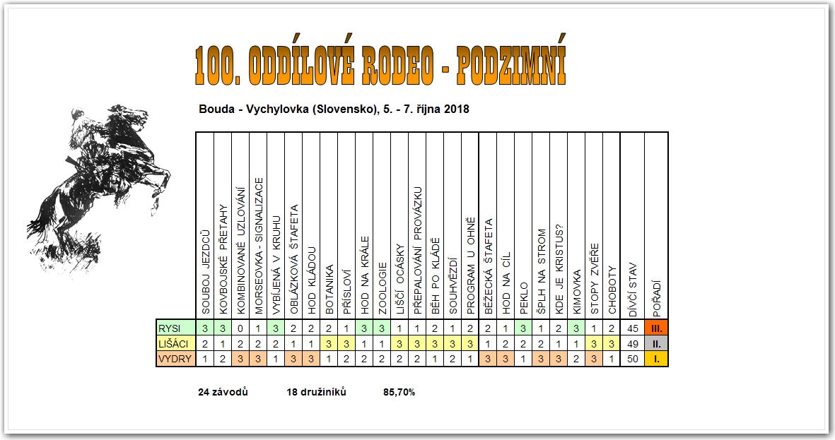 06. - 100. oddílové RODEO - podzimní; Bouda - Vychylovka (Slovensko), 5. - 7. října 2018 * K3