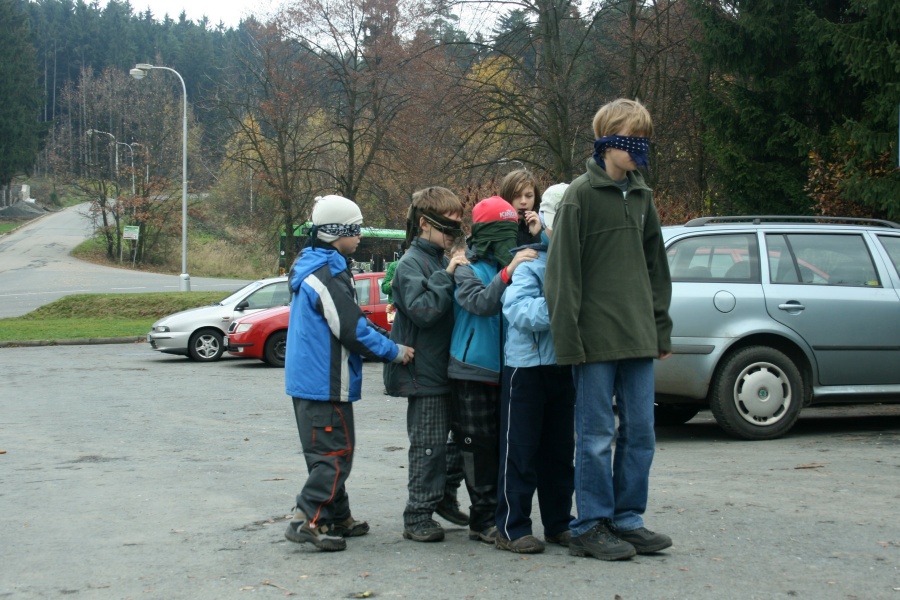 Již z dálky směřuji svůj zrak k zastávce s označníkem D v prostoru přednádraží, abych zjistil, kolik Trojkařů v dnešním nevlídném počasí na výpravu dorazí. Vidím hrozen lidí v němž rozeznávám „naše“ hochy. Za malou chvíli zjišťuji, že kluků se sešlo jedenáct a k tomu ještě musím připočítat Bubáka s Bertem. Ano, to je „ten s náhonem 4x4“.