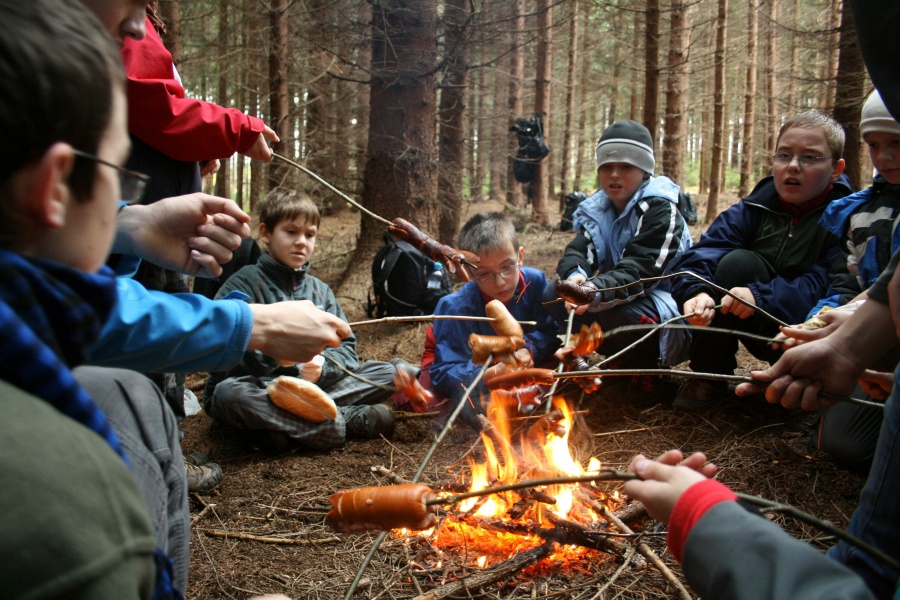 Čas oběda se nachýlil. Odbočujeme tedy z cesty, abychom rozdělali oheň k opečení špekáčků a jiných uzenin. Zrovna v okamžiku, kdy jej chceme zapálit, projíždí po šotolinové cestě Roomster Městské policie a tak se s Bubákem rozhodujeme, zanořit se ještě více do lesa abychom zbytečně moc neupozorňovali na náš přestupek s rozděláním ohně do 50m od hranice lesa. Přestává mrholit, což kvitujeme s povděkem. Při přípravě oběda slyším z úst Gorky a Milana neslušnou mluvu a to se mi nelíbí. Skaut je přece čistý v myšlení, slovech i skutcích! Po obědě předávám družinám k luštění Sudoku, které vyhrávají Vydry. Rysové se někde dopustili chybičky a následně se totálně zamotali ve změti oprav.