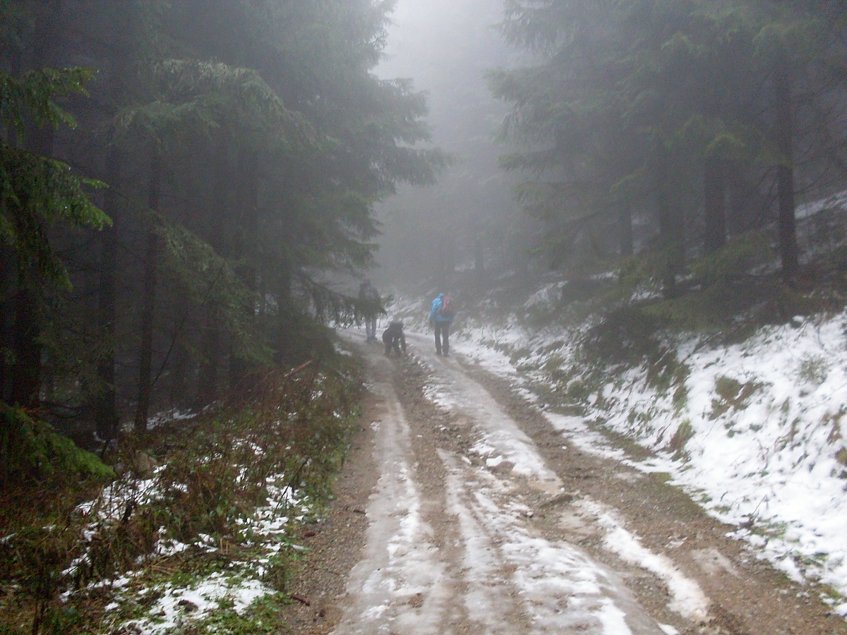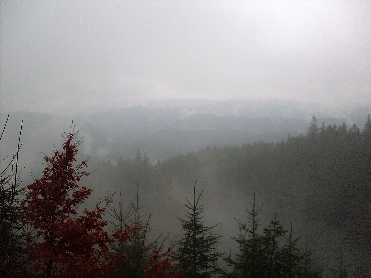 Stoupáš mokrým lesem, napité větve černých smrků ti kývají. Kolem cesty jsou poslední zmrazky sněhu a ledu. Potok zmizel dávno kdesi v údolí. Je velebné ticho. Celá horská krajina kolem tebe je zavalena bílou mlhou. Ale občas ji vítr profoukne, záclonu vodních par odhrne a potom zíráš na blízké vrcholky a vzdálené hřebeny.