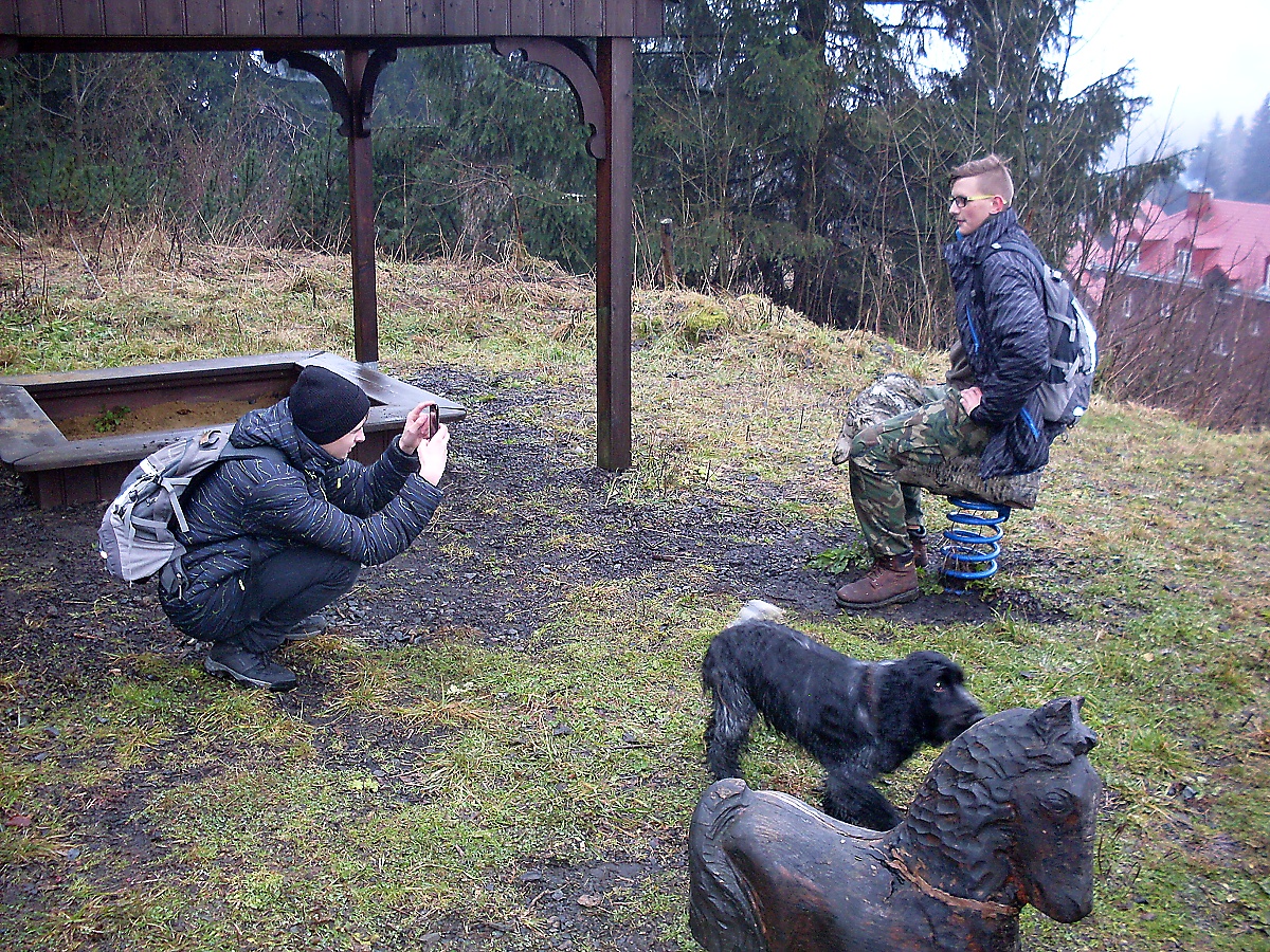 A potom čekáme na nástupním ostrůvku na náš autobus. A přijíždějící řidič se diví kam to jedeme a co tam budeme dělat? A Sira tahá za ocásek. A my si odkládáme svršky, protože cesta bude dlouhá a řidič topí naplno. Kromě těch dvou gambusínů Júňa a Sysla, co za mnou celou cestu hrají „dračák“, ostatní civí do mobilu, Švejk „žvejká“ a Dalmi se všemu potuleně chichotá. Ani nepátrám, na co ti synci čumí. Za Žermanicemi jsem chvíli zaklimbal a probírám se v okamžiku kdy si to autobus frčí už podhůřím Beskyd.