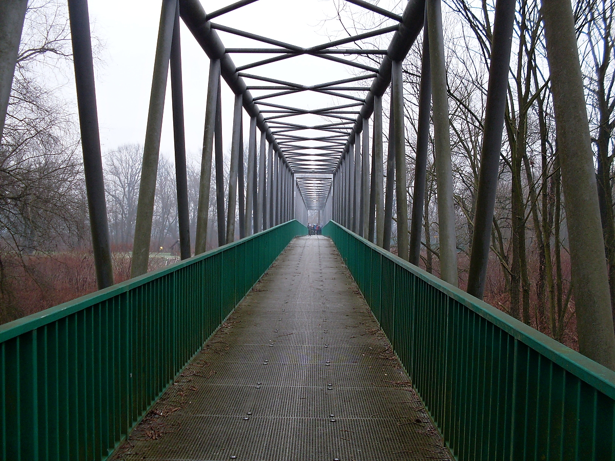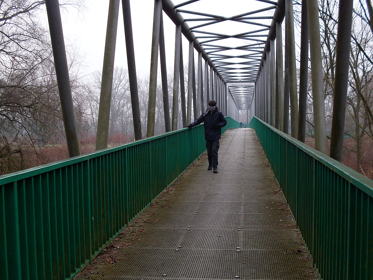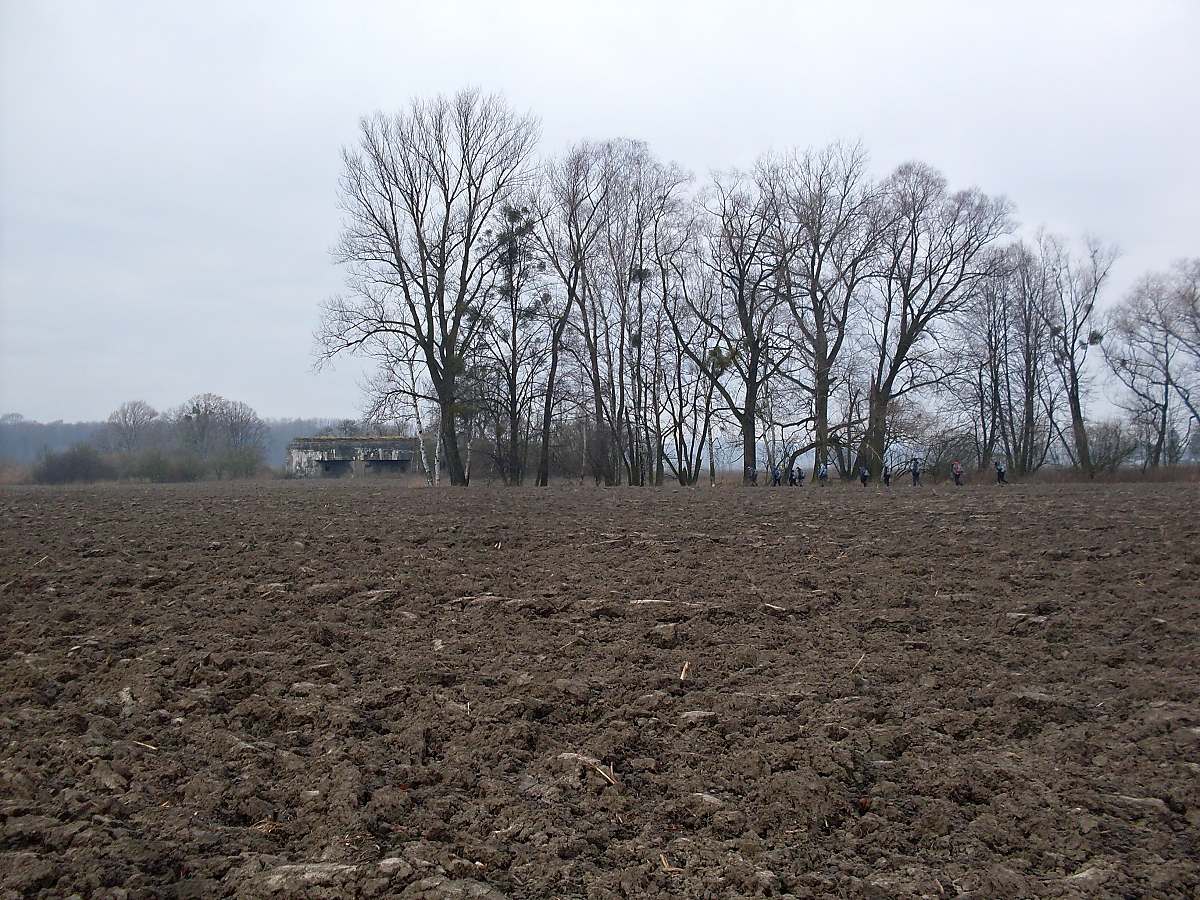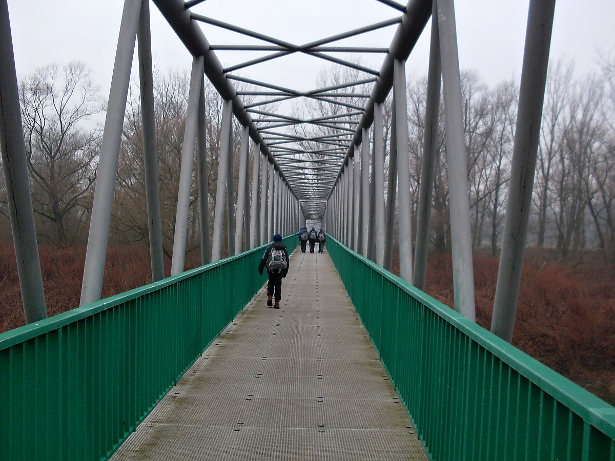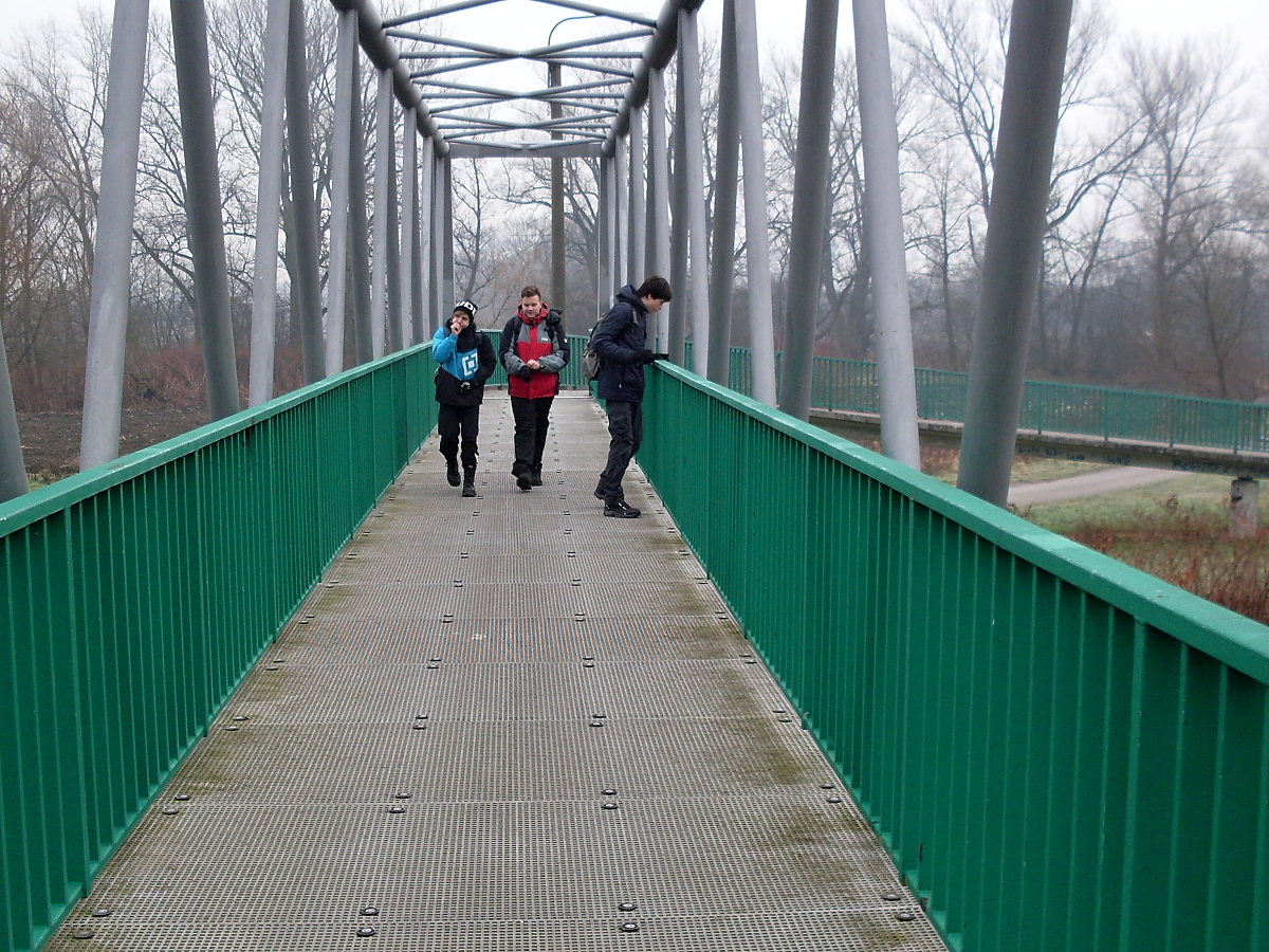 Přecházíme hlavní silnici. Dřevěná cedule nám oznamuje, že se nacházíme v ptačí oblasti „Heřmanský stav“. Z lehké mlhy vystupuje další silueta vodojemu. Pole jsou namrzlá, což je dobře. Snáze se bude postupovat oranicí mezi jednotlivým bunkry. K Antošovické lávce je to už jen kousek. Na chvostu se stále drží Tříska, Shrek a Séba. „Jé, most! A led na kalužích!“