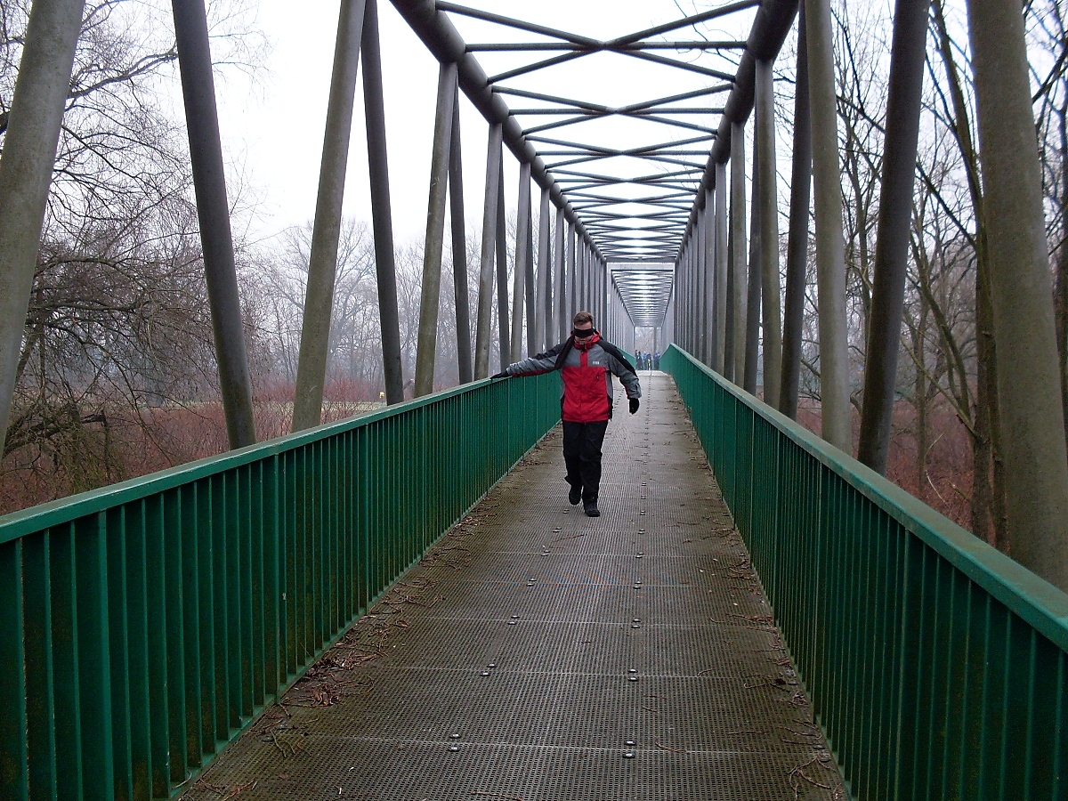 Běžíme na druhou stranu Odry. Dole plave hejno divokých kachen. A co to? Kachny začínají kačkat i za námi na mostě. To Séba mistrně předvádí kačera a Tříska se vedle něho svíjí smíchy. I mě dostal. Kachny pod mostem jsou udivené.
