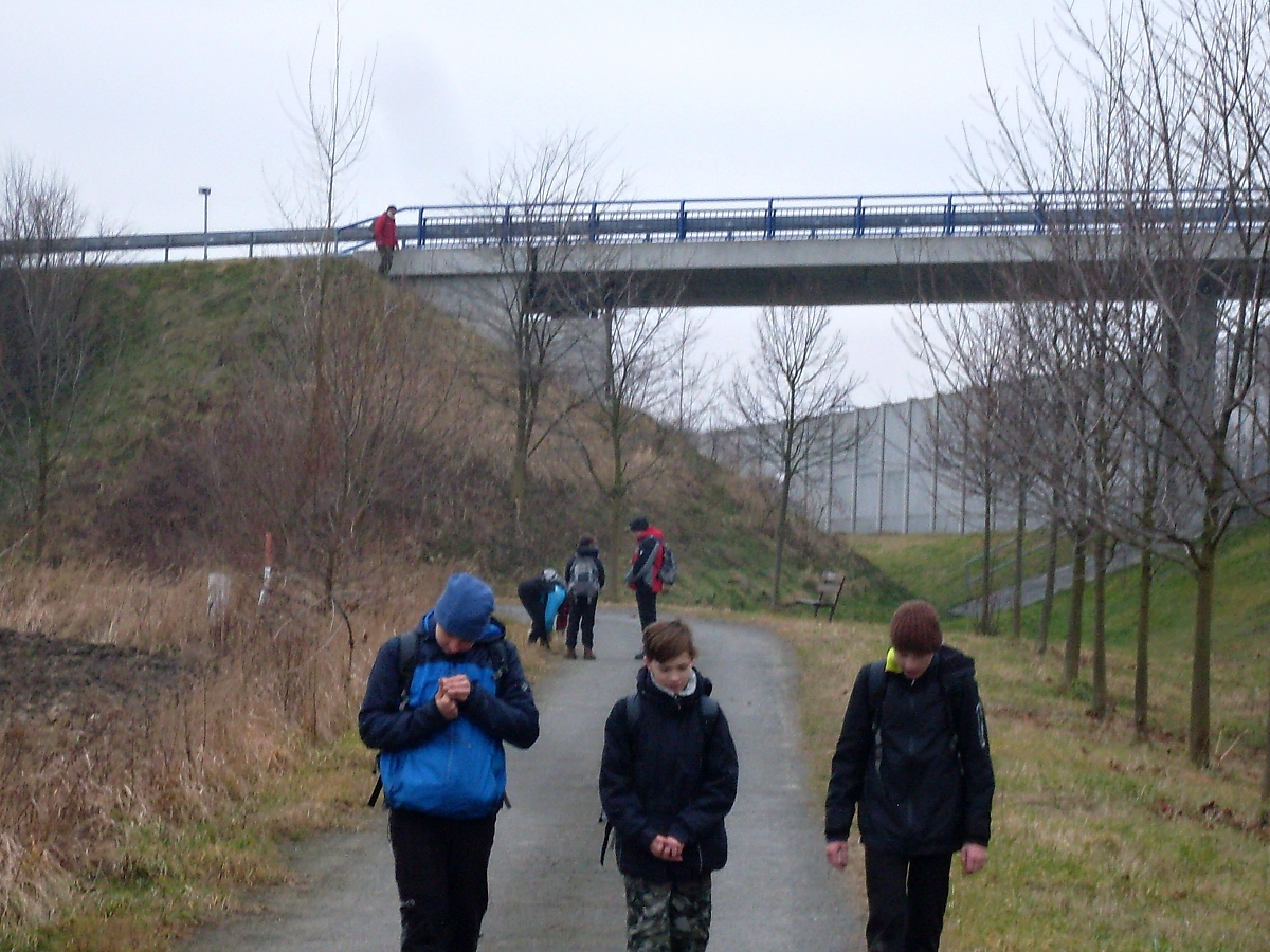 Opět se strojíme a po rozmluvě o dalším postupu Mona šplhá na most přes dálnici a oddíl pod vedením Třísky směruje ke skružím vodoteče, skrz ně překonáme bezpečně dálnici. Shrek vyfasoval fotoaparát k pořízení několika akčních snímku. Setkáváme se na druhé straně. Já přešel vrchem přes dálnici, oni spodem pod dálnicí. Cecil se ptá zda budeme už na bazéně.