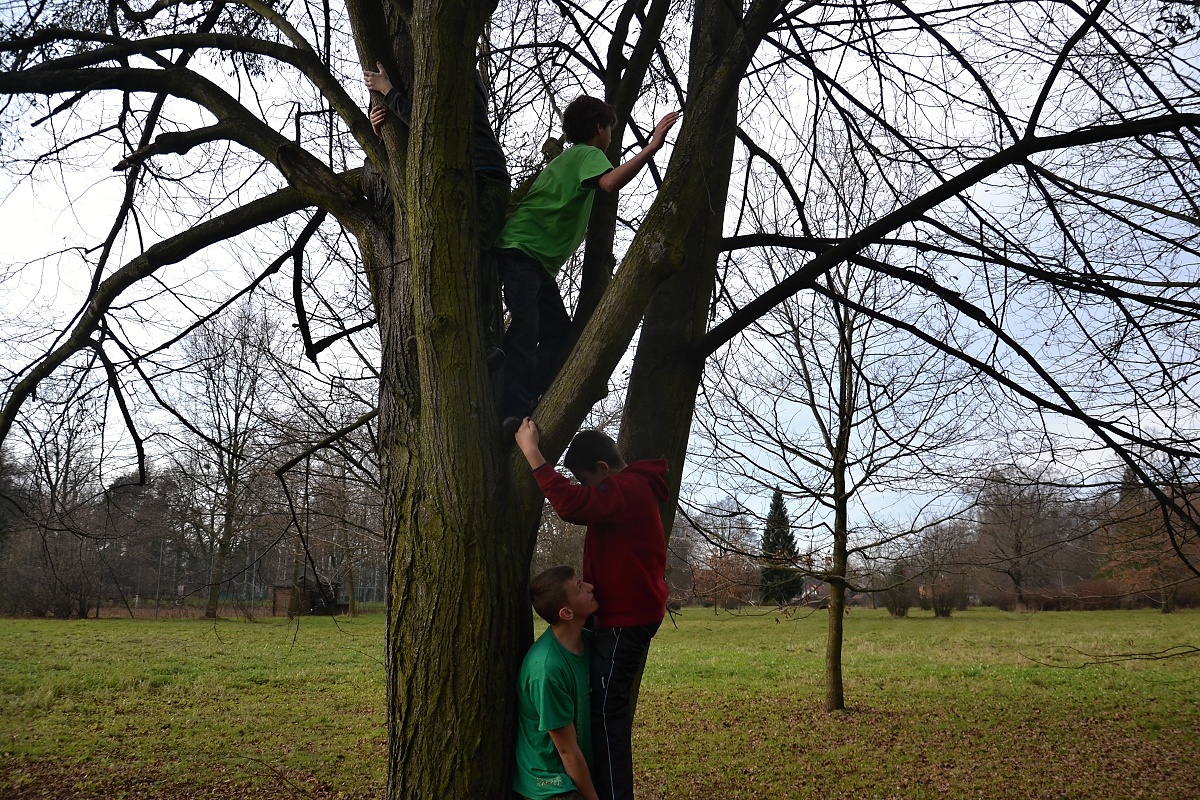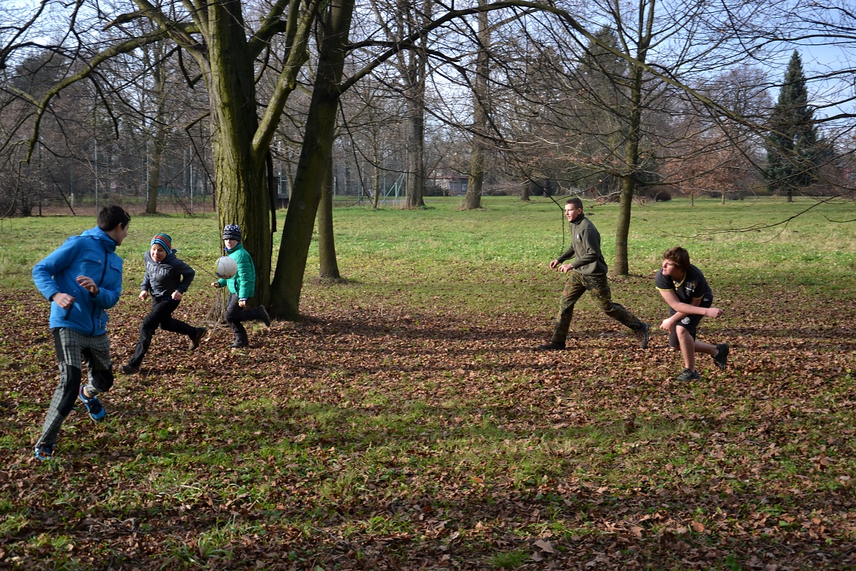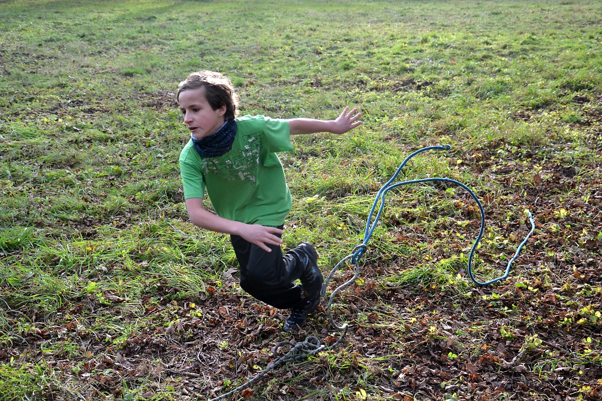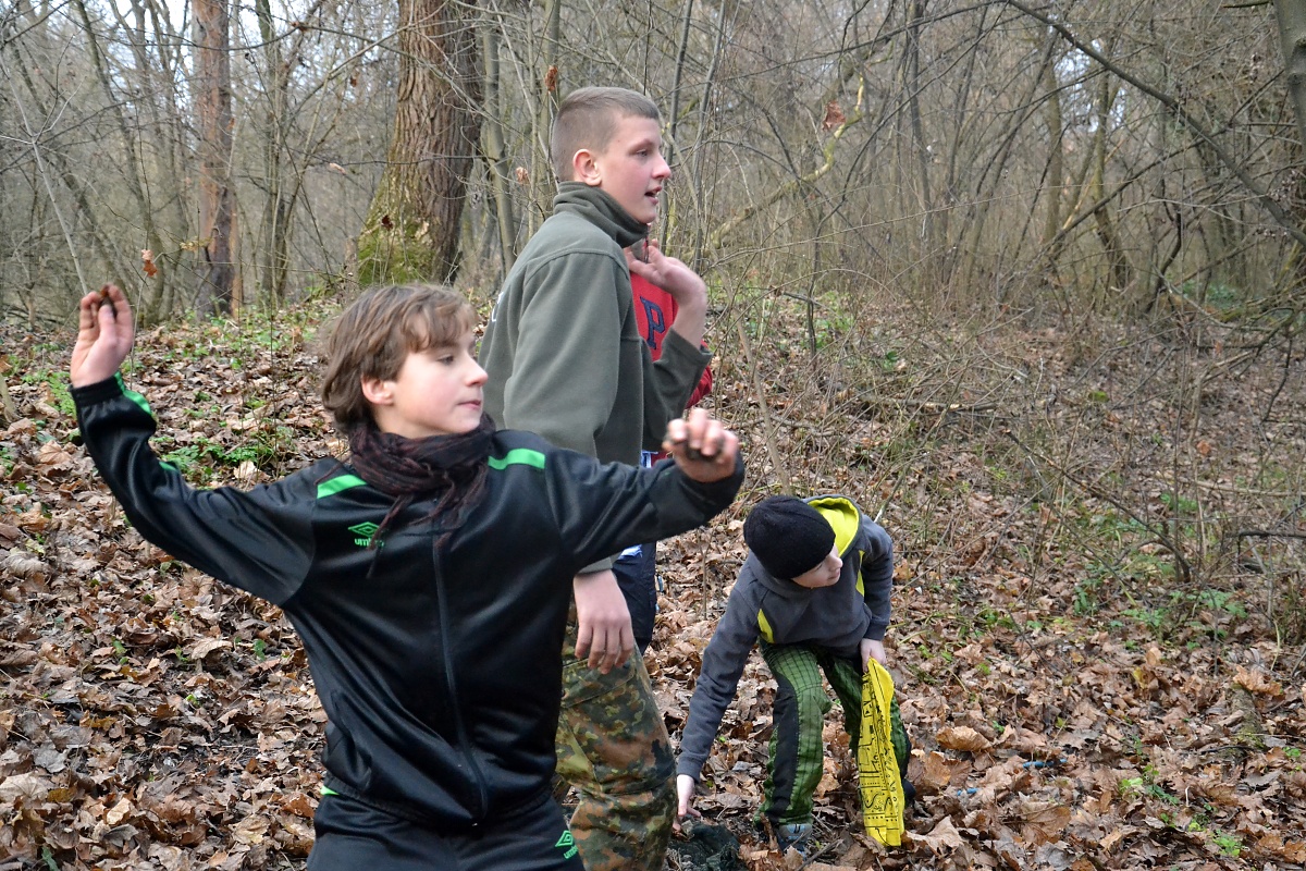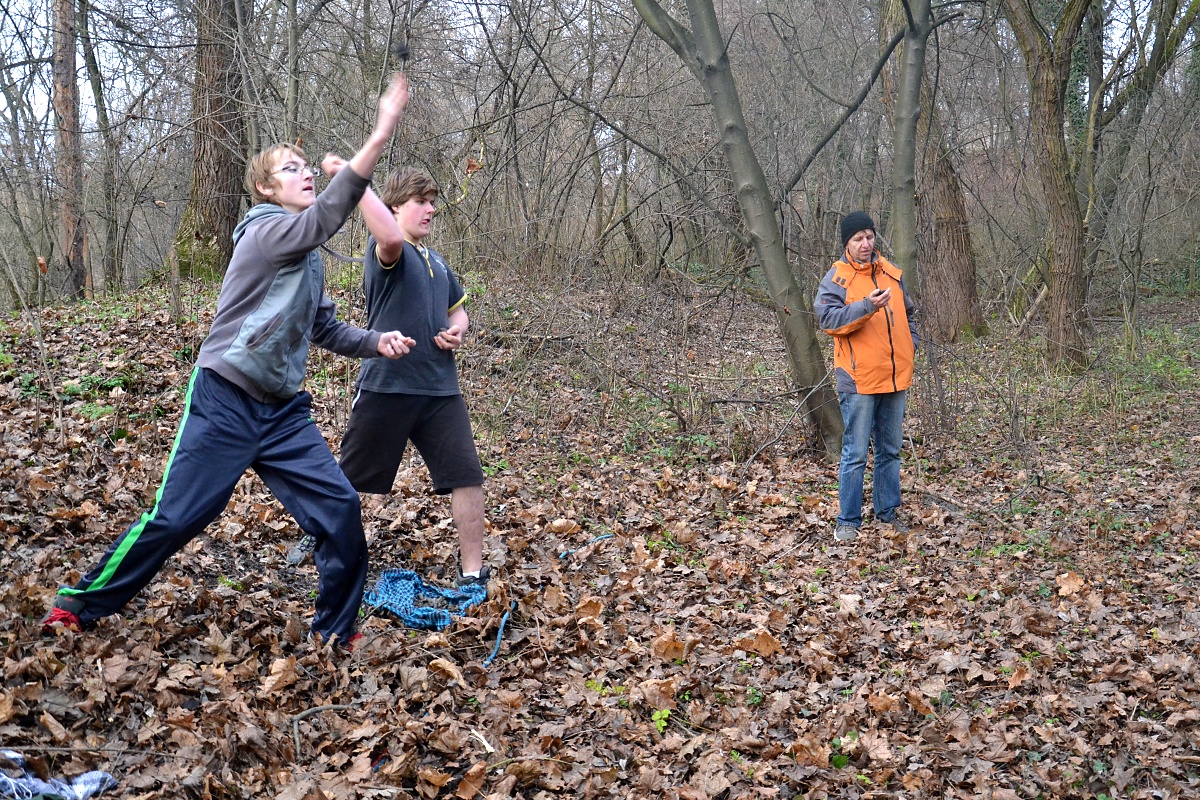 Tak tak jsme to podzimní rodeo stihli, a když se podíváte na přiložené snímky, kde místo sněhu je svěže zelený travník s koberci zlatého listí a slabé zimní slunce kreslí na kůře kmenů staletých stromů pitoreskní stíny, ani vám na mysl nepřijde, že se odehrávalo v polovině prosince. Snad byla na vině lapálie kolem klubovny, o kterou jsme přišli posledního října, snad byla na vině má vytíženost v práci. Každopádně jsme se na RODEO nijak nepřipravovali a první (nebo poslední?) volný termín jsme naplnili soutěžemi mezi družinami.