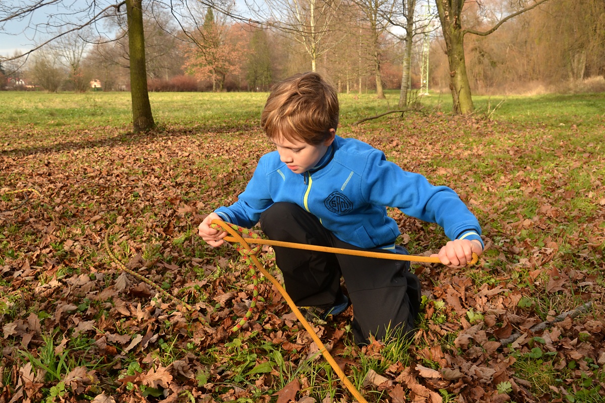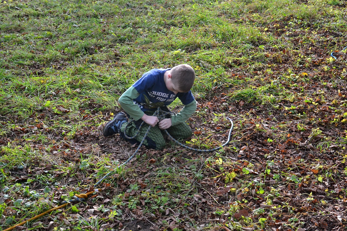 Vážeme pouze na dva stromy, protože nemám tolik las. Sysel se sice vnucuje se svým švihadlem, čehož si Antek cení, ale vázat budeme pouze na lasech. Tak jako vždycky. V prvním kole jsou nejpomalejší Vydry, ale jako jediným se uzly nerozvazují. Je to neuvěřitelné, ale v druhém kole žádná družina šest základních uzlů, tak aby se alespoň jeden uzel nepovolil, neuvázala. Vydry získávají tři body, ostatní mají po nule. Úkol nesplněn.