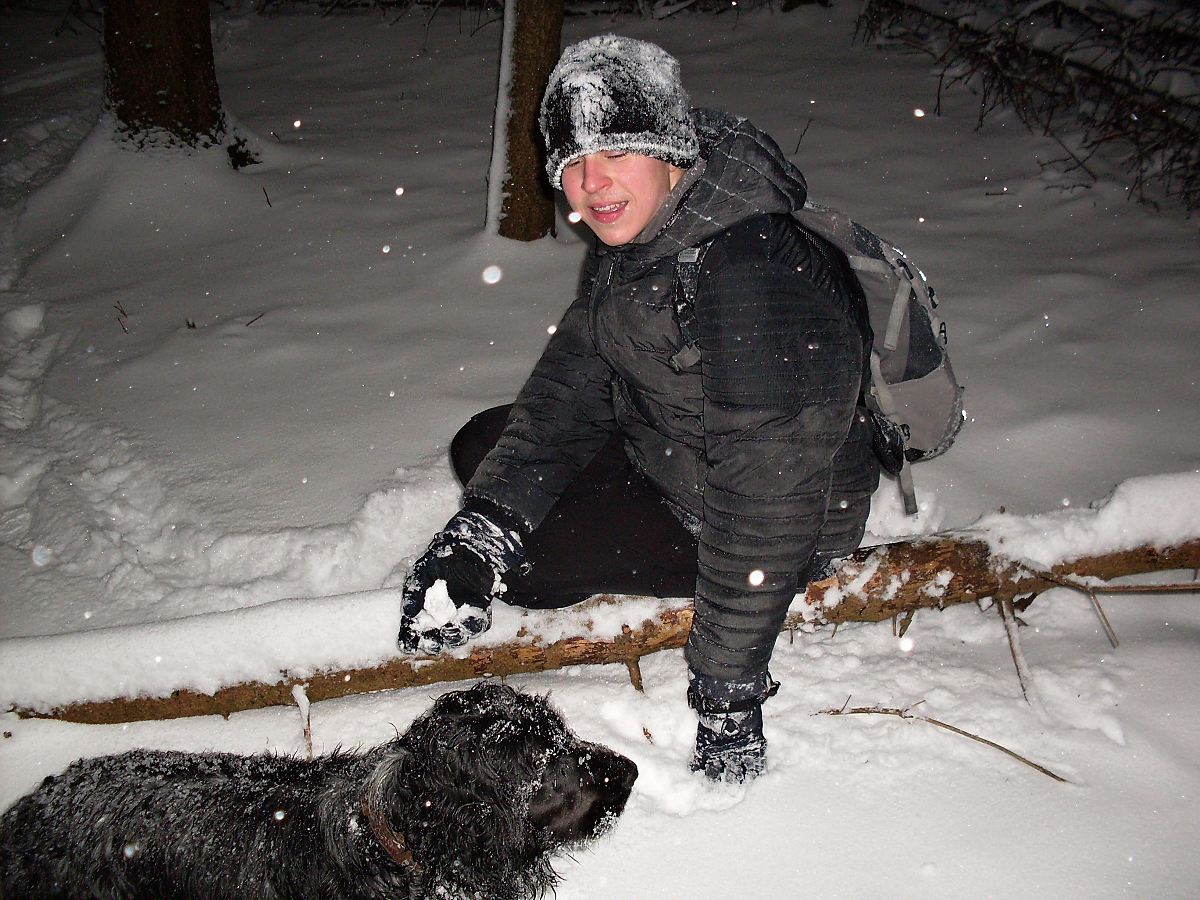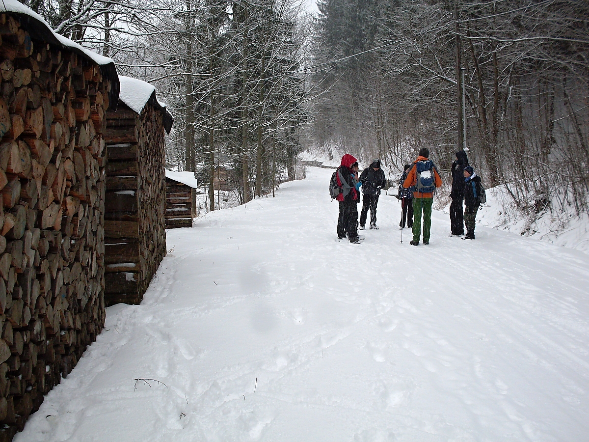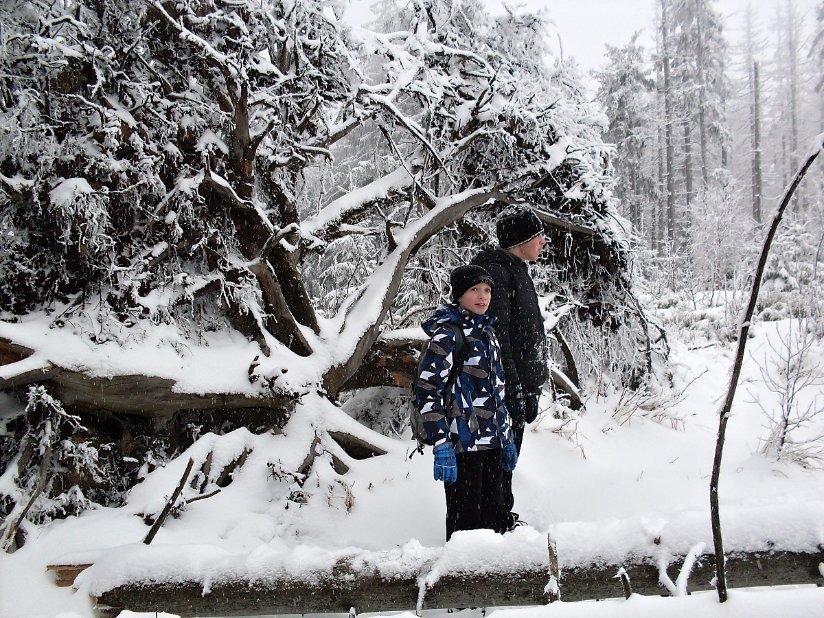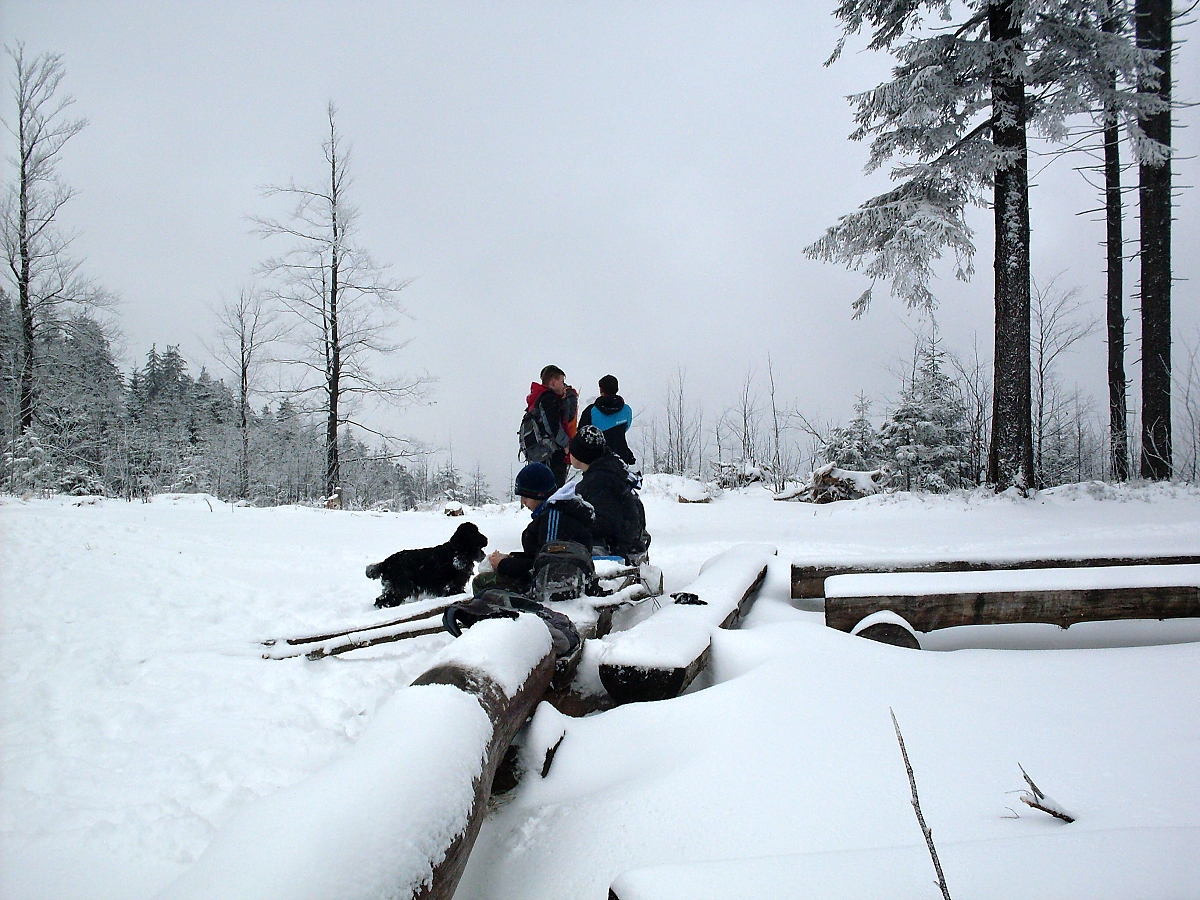 Zvolna kráčíme podél potůčku Přelač – kamenité vysoké břehy, splávky a splavy, zasněžené můstky. Bílá se snoubí s černou. Nádherná dokonalost. Hoši si stále nedokáží zapamatovat kam jdeme. No, na Přelač jdeme. Hodně dávno jsem zde, tou malebnou krajinou, s oddílem několikrát kráčel. Ale nikdy ne v zimě. Po cestě nějaké hry u metrů dřeva, ale nevím co to bylo, protože se snažím trhat se dopředu, aby na mne oddíl nemusel čekat. A sem tam i nějakou „fotéšku“ zrobím. Netvrdím, že dokonalou, ale někdy se podaří. A dokonce lze poznat, co jsem zvěčnil..