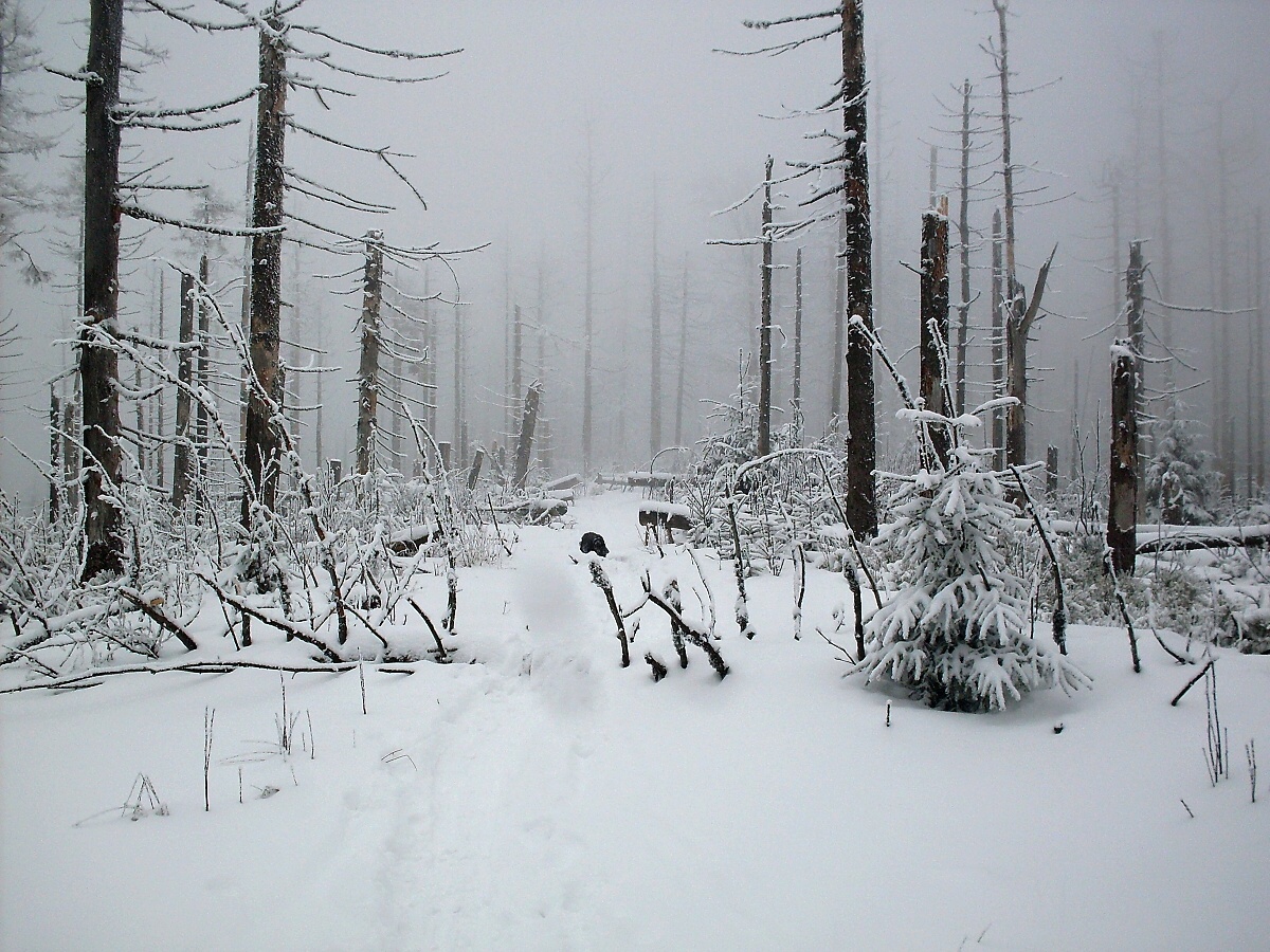 Vyvrácené stromy, prasklé pně a záplava čerstvě zasněženého, odpočívajícího borůvčí – stezka se klikatí mezi nimi. A skály a skalky – mrazové sruby. A mrtvé kmeny stromů, co se na jaře už nikdy nezazelenají, se vynořují z mlžné mléčné clony. Šlapeš v čerstvém sněhu. Ticho. Nádherné nebeské ticho. Nikde ani človíčka. Jen ty a tví kamarádi. A jejich tlumený hovor v tom těžkém, mrazivém vzduchu, k tobě nedoléhá. Ještě nevíš, že ke šťastnému životu potřebuješ pouze pět věcí: běh, česnek, čisté svědomí, střídmost a víru ve vlastní zdraví…