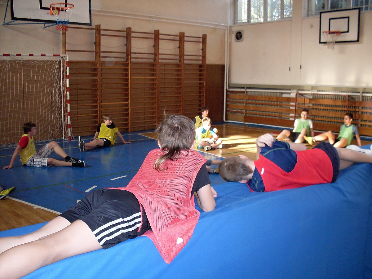 Po snajpru, (dívám se do tabulky, že se nám nějak divně rozjíždí systém zápasů, budeme se na to muset podívat na některé z oddílovek), vytahujeme branky. Ano jsou na svých místech, nebudeme tedy muset pátrat v přístupném školním traktu. Ukončujeme dvěma zápasy (dnes to jsou Rysové) jiný turnaj do Zimní 13. A tím je krabaná, nebo-li sedací fotbal. Vydry posiluje Antek, protože je mu zima a tak se odhodlal proběhnout se. Po chvíli hlásí, že už mu je teplo. Rysové prohrávají s Lišáky 1:3, ale vítězí nad posílenými Vydrami 4:2. To už Lišáci šplhají na tyč.
