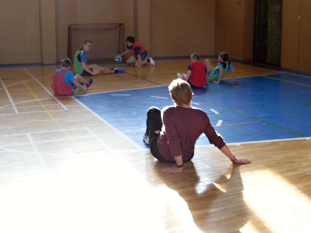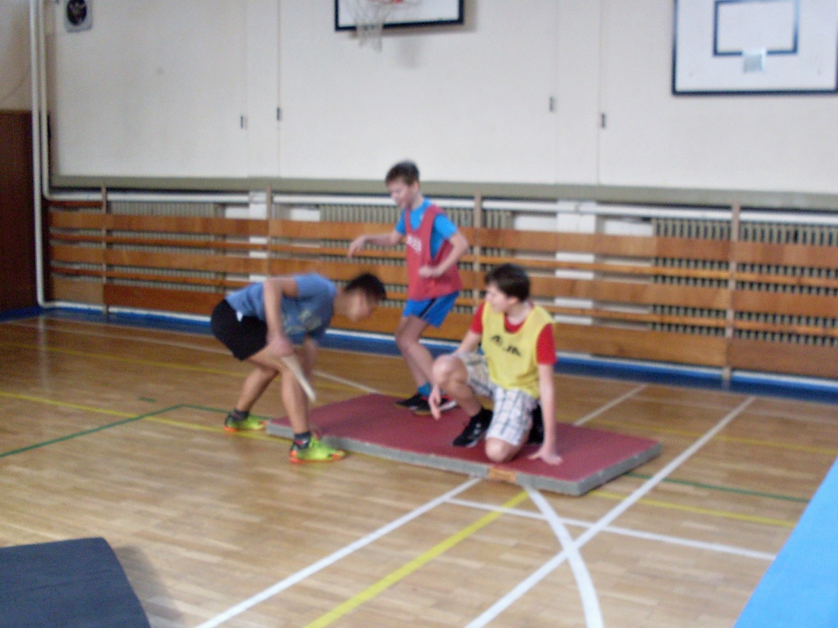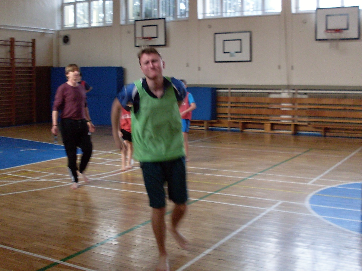 Otevírám turnaj v gymbalu. Je to hra pro silné muže – ostatně jako všechny v Zimní 13. Ale tato hra je největší „maso“. Chytit pecku gymbalovým míčem zrovinka když jsi ve výskoku, tak to tě – kamaráde, dokáže převrátit. (Třeba jako to Mates předvedl!). Nemluvě o přímý kontakt s obličejem. To je obtisk přes celou tvář. Ani nedomýšlím hlavičku do míče nakopnutého bodlem. To dokáže posunout i krční obratle. Z toho mám děsný strach!! Proto je dovoleno takové míče odbíjet spojenýma rukama.