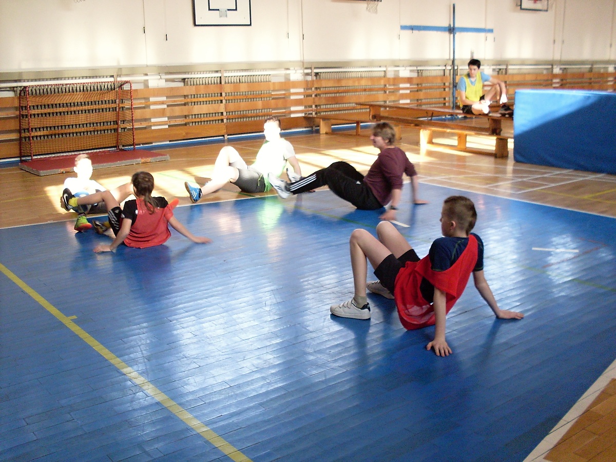 Hned v prvním zápasu okusil tvrdý chlebíček gymbalu Dalmi. Ten se po hlavě a bezmyšlenkovitě vrhnul na středovou věž na jejímž vrcholu je po zahájení umístněn gumový balon a se zlou se potázal. Jeho protivník Startér totiž míč lehce odsunul rukou do strany a překvapený Dalmi letěl z žíněnek na druhou stranu, kde dopadl zády na parkety. Brýle na jednu stranu, Dalmi na jinou stranu. O jo joj! Toto bolí! Že si Dalmi zrovna nepískal, lze spatřit na snímku č. 35. Jak hloupost bolí!! Když se však vzpamatoval z otřesu a brýle mu byly nasazeny, s chutí se zapojil do zápasu a Rysové remizují s Vydrami 11:11. Lišáci ve svých zápasech poráží obě družiny. Vydry 7:3 a Rysy 12:11. První kolo je tak uzavřeno.