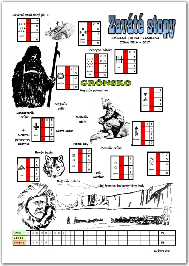 Jako psát o tom, jaké bylo ráno počasí, či v jakém rozpoložení jsem se do školy U Lesa ubíral, to dnes nebudu. Zkrátka jsem se hned po příjezdu převlékl a mazal do tělocvičny rozhodit více než stovku zavátých stop. Antek odpaluje hrozen hledačů a ti se vrhají do tělocvičny pátrat po fragmentech Franklinovy expedice. Ještě před zahájením se řeší nesmyslná potyčka na kruzích. Nevím zda v tom měl prsty Páťa, či Dalmi.