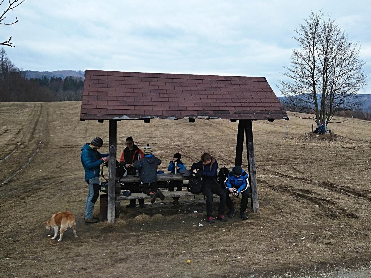 Šálí mne zrak, či co? Že by Simon, který se na špici utrhl, rozdělal oheň? Ne, opravdu tomu tak není, oheň rozdělala rodinka, která již na vrchol dorazila před námi. Občerstvujeme se, obědváme. Maty, Rafan a Kroky losují, kdo z nich se půjde schovat. Ano, budou Sardinky! Krokyho nachází pouze Simon, Pedro a Gorka. Také já, ale známku získávají pouze první tři jmenovaní. Praděd se střídavě ukazuje a schovává v oparu. Škoda, kdyby byla lepší viditelnost, byla to velká paráda. Ludva vysvětluje Čedarovi princip přečerpávací elektrárny. Zřejmě ho inspirovala uříznutá vrchní část původního vrcholu Dlouhé stráně (dlouho jsem si myslel, že uříznutý vrchol má masiv Mravenečníku!). Zahajujeme sestup. Problematickou, klouzavou část, bere nechtěně po zadku jen Kroky. Twista, řítícího se s povykem dolů, zachraňuje náletový jasan silný asi jako násada na hrábě. Kupodivu vydržel…