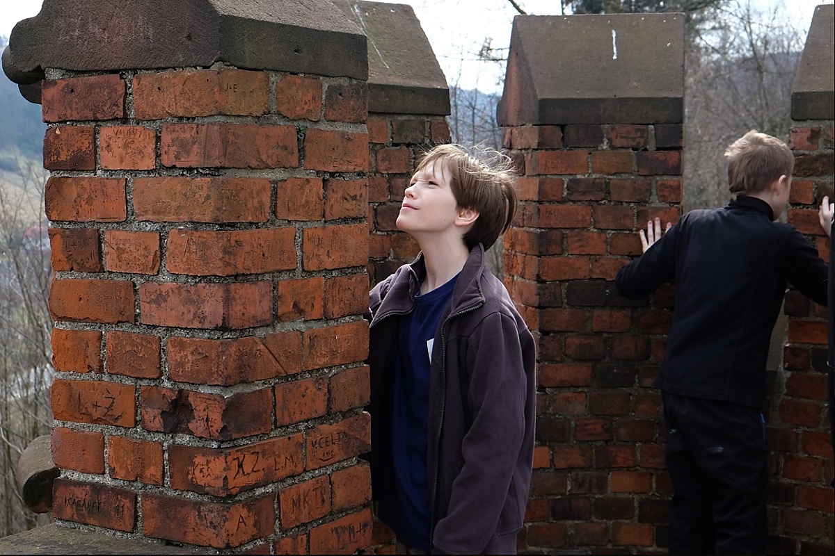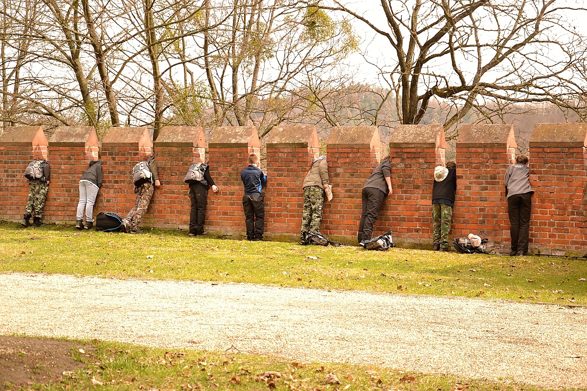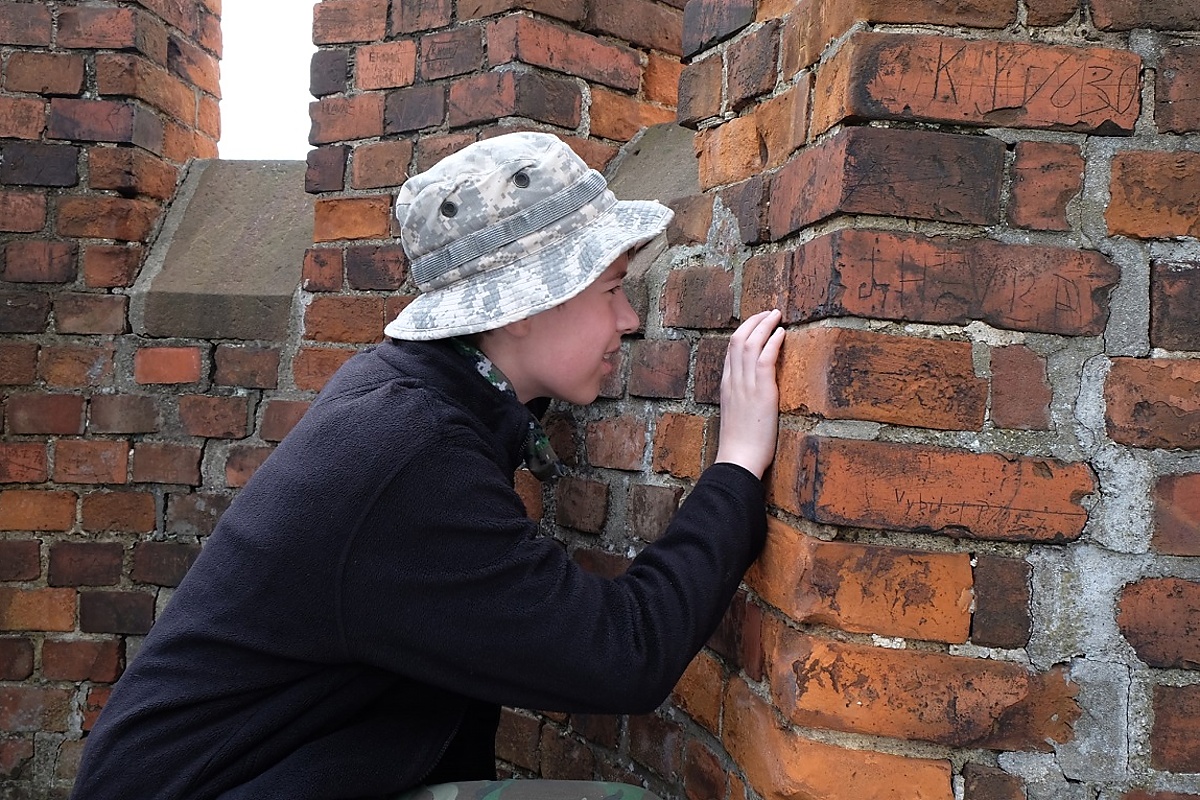 Ale hoši se, kolem fotografů, sunou naštěstí dále. Obligátní „fotéška“ u hradeb, několik portrétů do památníčku, júvanečky, nechoďte všichni k té balustrádě, nebo celá ta terasa určitě s námi spadne! Nespadla! Několik borců zkouší skoky z nejvyššího schodu, ostatní se nezapojují, protože top není za žetony. Až u Bílé věže vysvětluje Antek na nástupu, že půjdeme hledat nejnižší letopočet na cihlové hradbě.