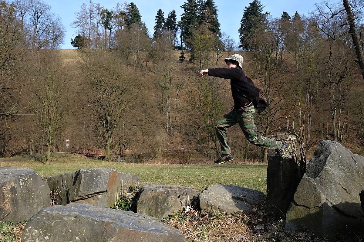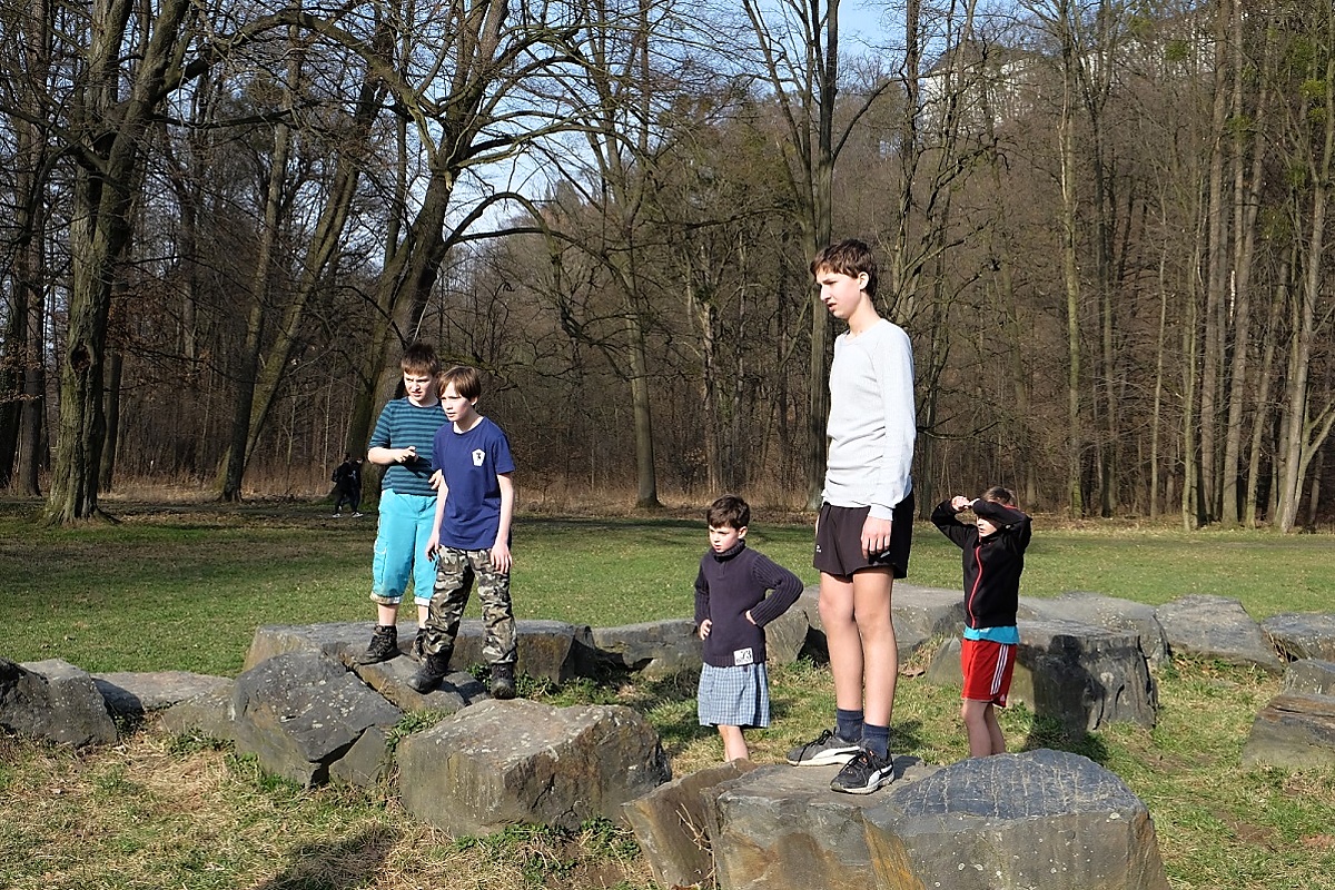 Prvně si zahrajeme snajpra. Rysové se spojují s Lišáky. V poli je nedostižný Startér. Spojenci si vedou dobře, ale to nestačí. Vydry je nakonec poráží potupným způsobem a hru raději rychle ukončujeme. nastává zlatý hřeb dnešní výpravy. Běh po balvanech. Podnikneme dvě kola, rychlejší čas se bude počítat. (Teď mě napadlo, že já musím mít výsledky i z minulých, dávno proběhlých výprav. Možná by stálo za to porovnat je s dnešním závodem. Ale protože se tady na tyto řádky z družiníků nikdo neprokouše, nebudu nic řešit).