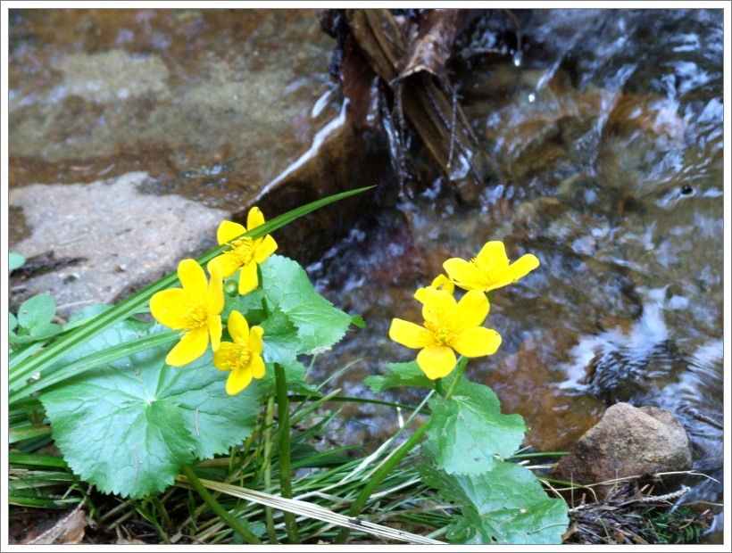Valíme se ven, jdeme do sedel a zvolna se po asfaltce spouštíme směrem k tunelům (tunelu?). Nepůjdeme skrz něj, byť by vás mohly přiložené snímky zmást. Kráčíme, snad rychleji než bychom měli – máme dostatek času, přes jablůnkovský průsmyk. U cesty, ve struze, jsou nádherné růžice blatouchů. Nedá mi to, abych si jich několik nezvěčnil. (Teď zjišťuji, že jsem zde žádný snímek neuvěřejnil, vyjma obrázku Rendyho z údolí Mohylího potoka).