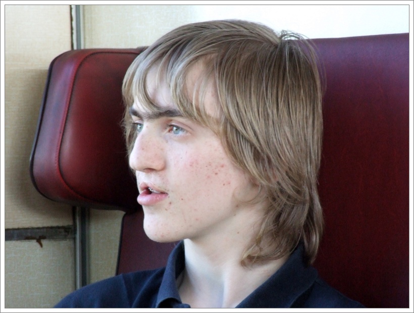 Na nástupu nám Mona prvně vyplísnil, prosvištěl několik nepsaných oddílových zákonů a pak se vypařil za jakousi sličnou slečnou s bicyklem. Přebalujeme loapy, schováváme mikiny. Ty dnes určitě nebudeme potřebovat. A už si to valí k perónu „tornádo“ (pantograf řady 460) a za příšerného pískotu zastavuje. Z okna na nás mává Vitas a my se páskujeme do motorového vozu a obsazujeme sedadla. Vytahujeme bloky a tužky, protože hned jak se rozjedeme, bude „za trest“ 19. úsek radistické olympiády – Vietnamština. Mona dorazil (nakládal té sličné slečně kolo do vlaku – no co by jste pro svoji učitelku angličtiny neudělali, že jo?) a hned nás poděli zprávami a odstartoval čas. Výsledky nebudu zveřejňovat, chytrý čtenář si je najde v tabulce R.O.! Ale první byl zase Danny a druhý zase Roman. V Těšíně už vlak praská ve švech. Následně však výletnící vystupují a za Bocanovicemi už jedeme ve voze téměř sami.