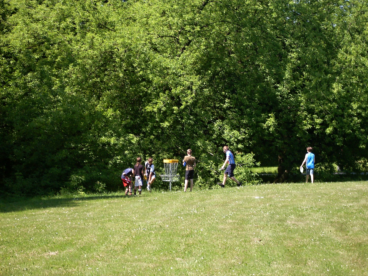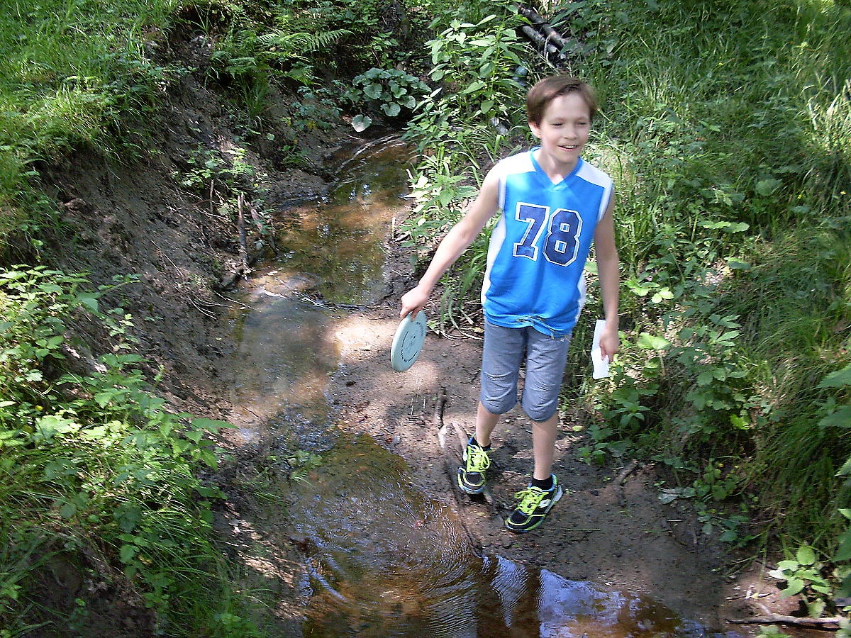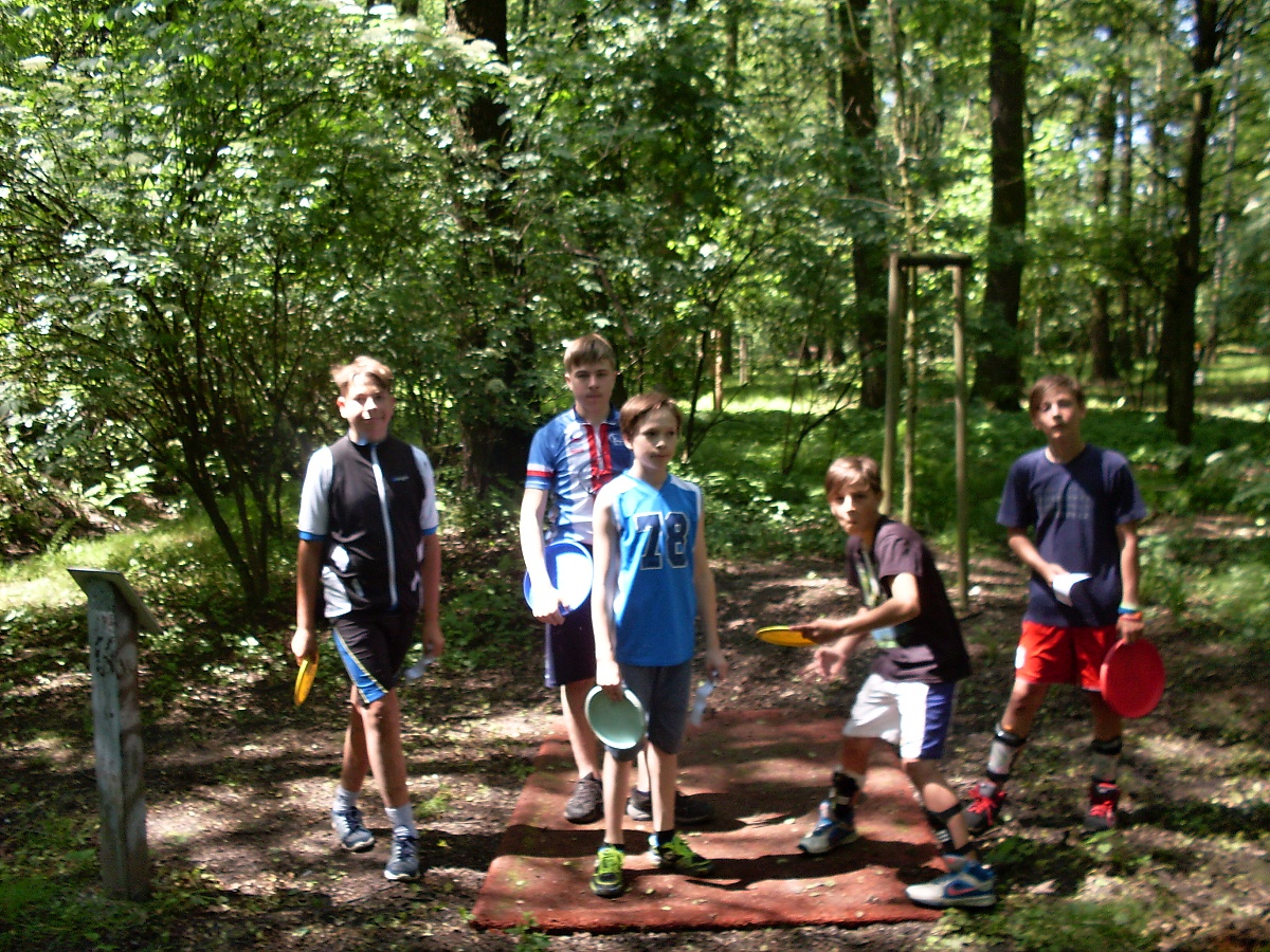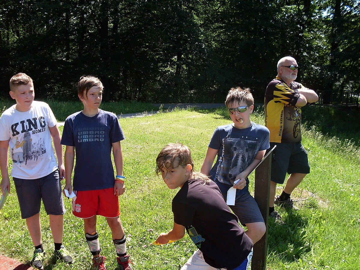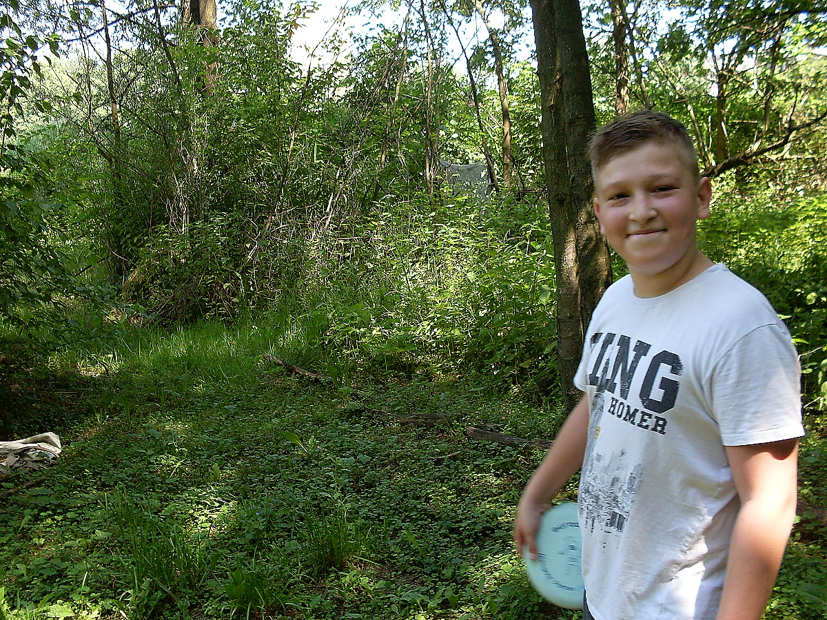 Těsně u hraniční čáry, dva tři kroky a jsi v cizím státě, odkládáme kola a přilby. Část oddílu se napájí, jiní jdou dále a vytahují svačinu, protože jsou notně vyčerpaní. Odcházíme na obhlídku tratě. Po projití „skokanské“ části, kdy se diskutuje o jednotlivých překážkách a nejrychlejším možném projetí, se Mona vrací zpět ke kolům na hlídku, ostatní pokračují až do cíle a vrací se zpět. Následuje druhá část – trénink. jednotlivci sjíždějí ze startovní hrany mezi stromy a skoky a klopené oblouky. A vzápětí se škrábou nazpět a zkouší jiný směr. „Všichni na start!“