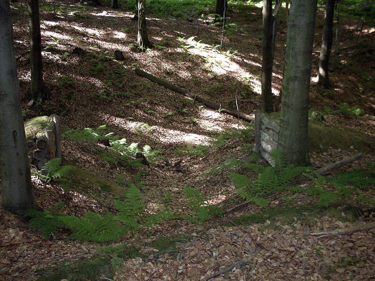 Zvolna se spouštíme k Černému lesu, ku hranici. Stromy jsou zde v širokém pásu vykáceny. Šustíme si to po lesní cestě kamsi dolů, k brodu. Připomíná mi to nástup na legendární „hadovku“ v Lužici. Hledáme odbočku na „trailerek“ – cestu, mezi stromy se všelijak klikatící, nahoru a dolů směřující. A už je tu. Séba a Startér ji ukazují, včera zde trénovali. Páskujeme se za sebou a mezi stromy, zvolna po vrstevnici se spouštíme k potůčku pod bývalá kasárna.