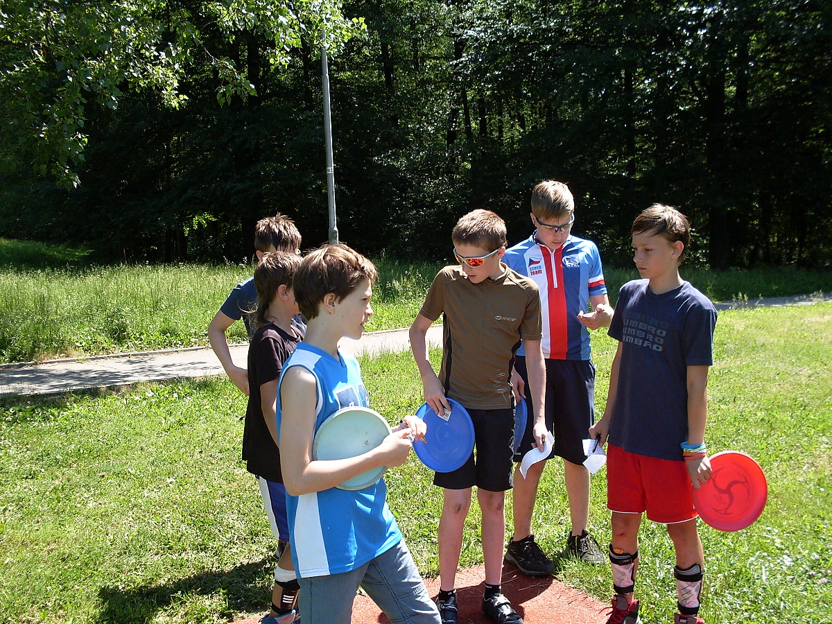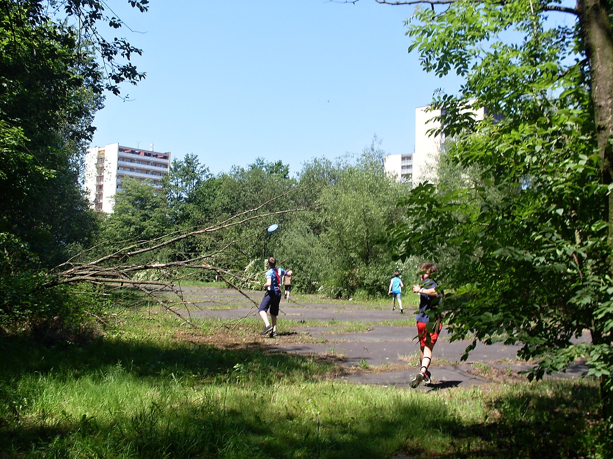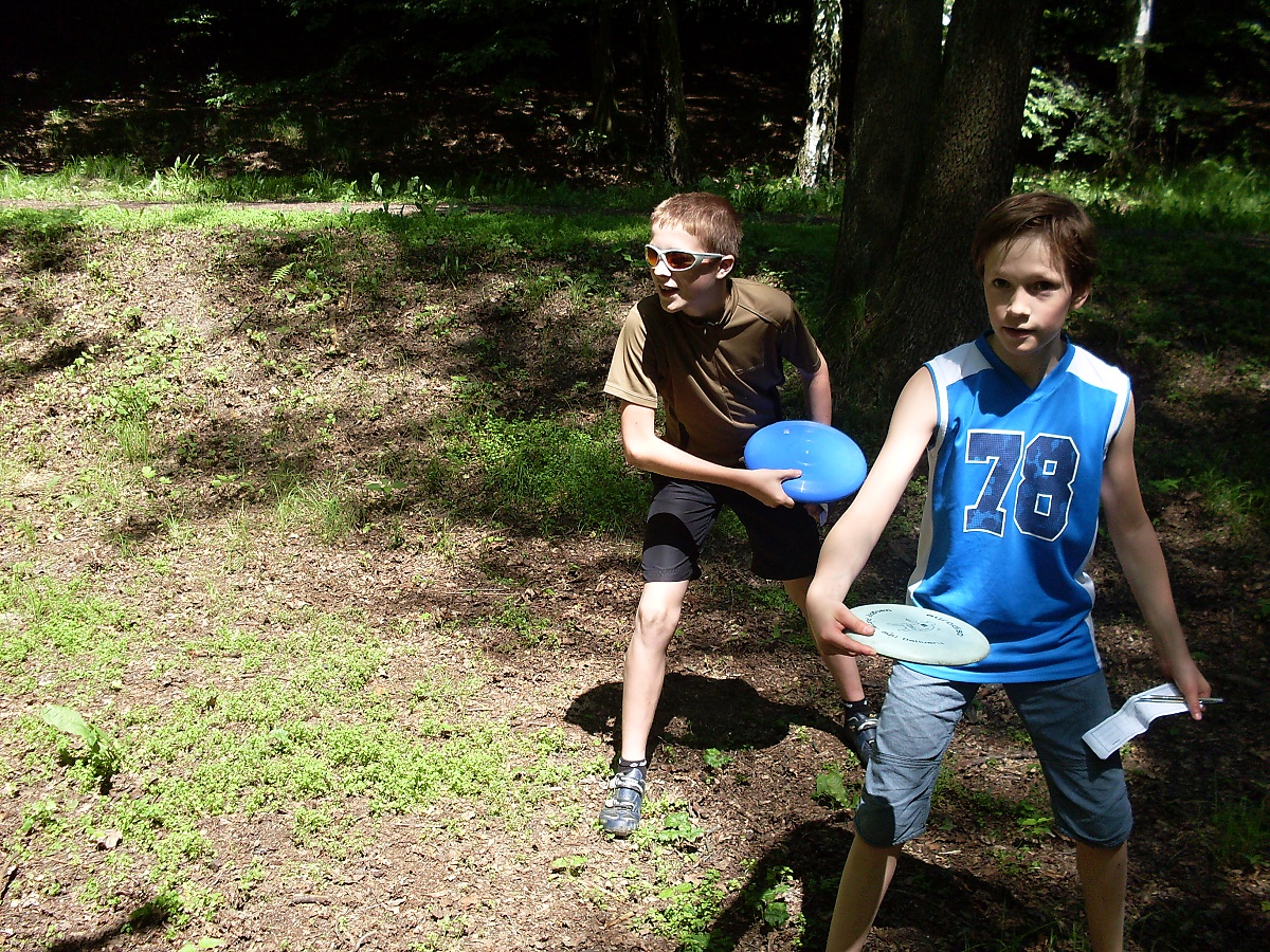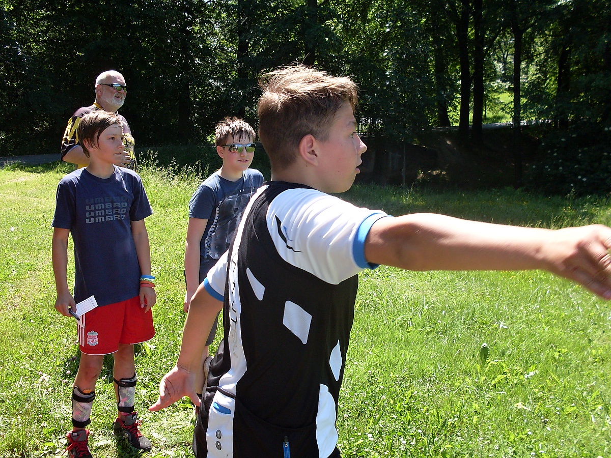 Dojeto, dobojováno. Všichni se vrací na start pro výzbroj a výstroj. „Nezapomeňte na talíře!“, volám za nimi. A než se sem závodníci vrátí, mám spočítané výsledky. Vítězí Saly na svém „agrostroji“, druhý je Séba, třetí Jack. Jemu postačil čas z prvního kola. Oddíl mě přemlouvá abychom k návratu ke kasárnám použili jeden z nejtěžších trailerů – cestu, kam by se se svými dětičkami nevydal žádný fotr, neřku-li maminka. Všichni se dušují, že to bude v pohodě, nezbývá tedy než vyrazit. Přes rokle hluboké drápeme se na vršky a sjíždíme až do míst, kde jsme nastupovali na „páteřnici“ Černého lesa ráno. A pak už jen zvolna ke kasárnám, novou cestičkou až k majestátnému buku a už jsme u „Tesarčíka“: Akorát Syslovi se zakousl řetěz do středu rámu. Vše zdárně vyřešil vracející se zdravotník Švejk. Spouštíme se kolem lázní ke „kaflandu“.