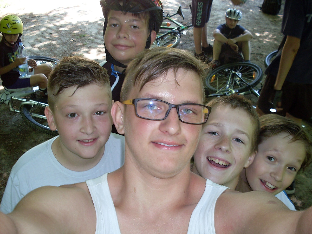 Chybí i Runy, Dodo, Infin. Tříska, Shrek a Vítek se omlouvali. Je nás jedenáct, a já. Při výjezdu k lázním dochází k několika strkanicím, především mezi Sobíkem a Vendym. Osobitý styl jízdy Sobíka na kole na mnohé působí jako med na vosy. Karamba, když vidím, že Sob si s kolem moc nerozumí, tak se obloukem vyhnu jeho bicyklu a nelepím se na něho. Od „Tesara“ se rozbalujeme a šlapeme si to podél Černého lesa až nahoru do Ráje. Sluníčko se činí, rozpalovaný asfalt vydechuje teplý vzduch. U „Štěrby“ jsme mokří jako myši. Doráží Sobík, jsme všichni.