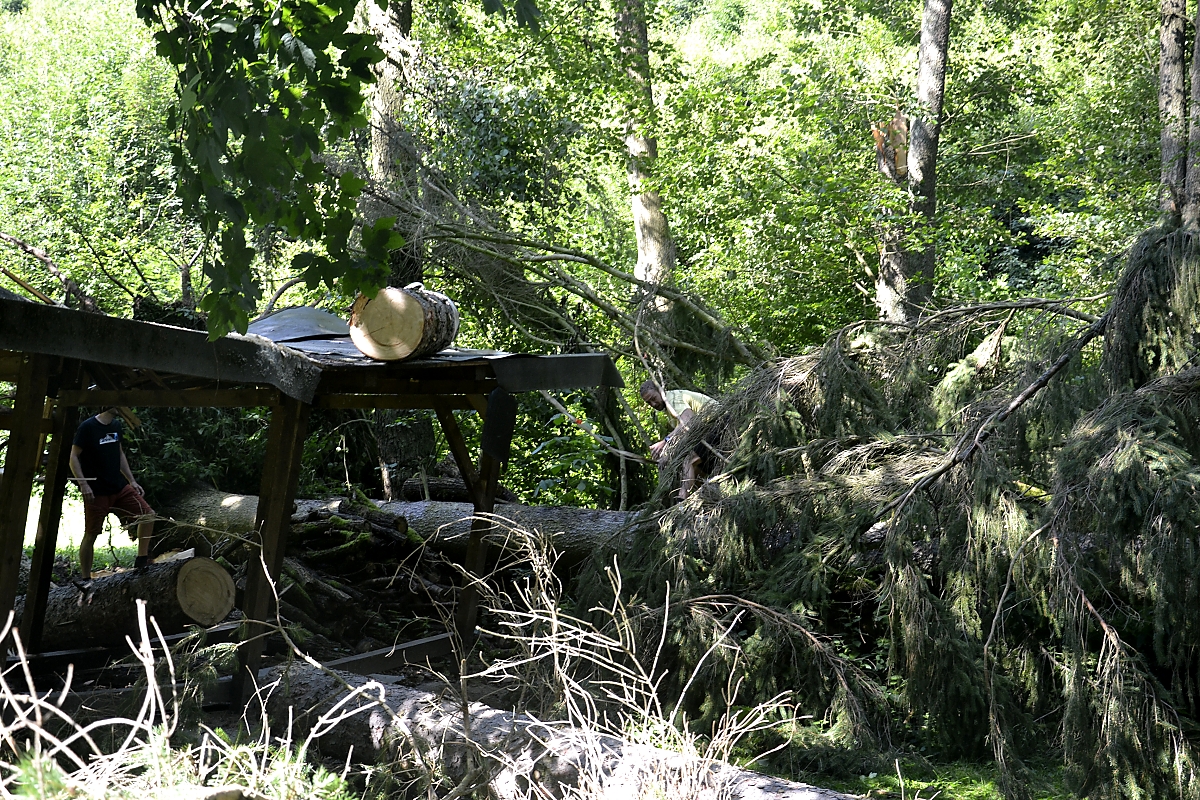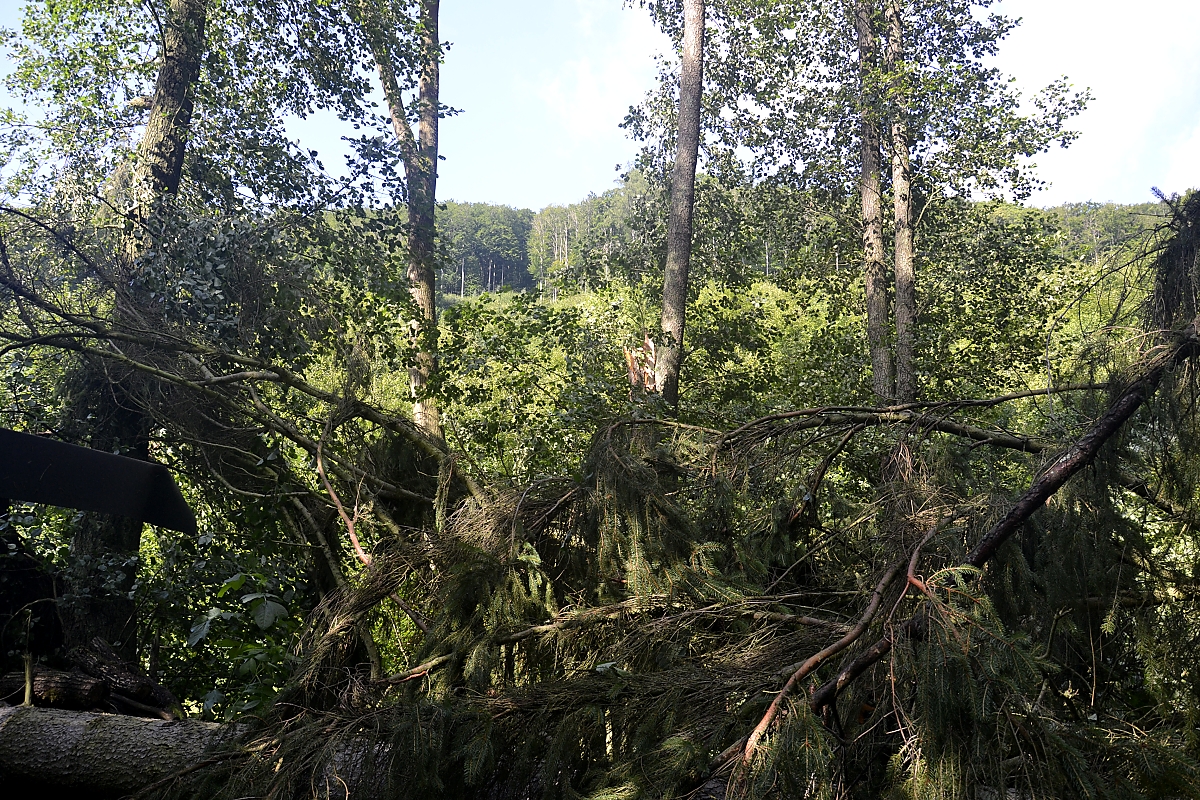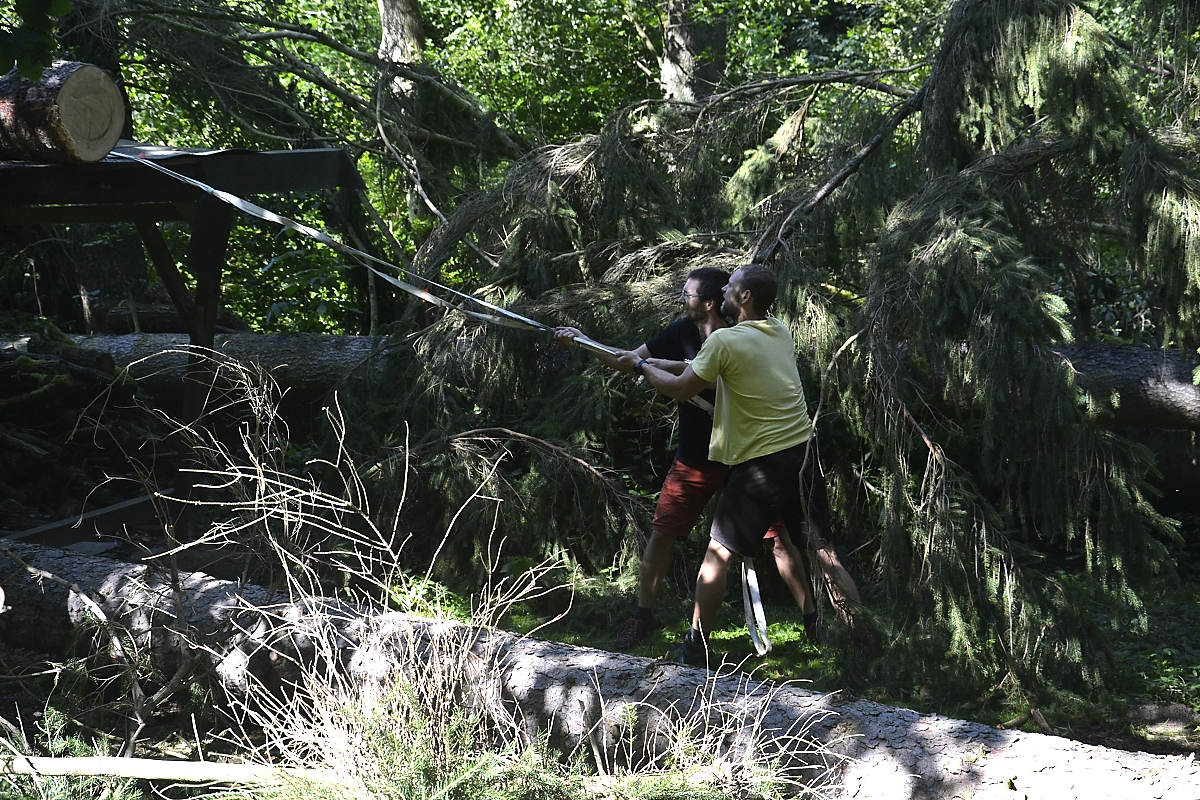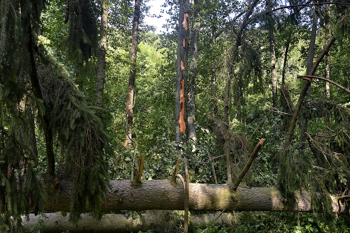 Záběry pořízené bezprostředně po několika minutové větrné smršti, doprovázené vodní clonou, vypadají hrůzně, ale ne, nelekejte se! „Živá síla“ nebyla tknuta. Osazenstvo tábora ušetřeno! (I když poslední čtyři táborníci, odvazující gondolu z lanovky, prchali z lesa v okamžiku, kdy kolem nich praskaly kmeny stromů a proti nim se zvedaly koláče kořenových „balů“ stoletých velikánů).