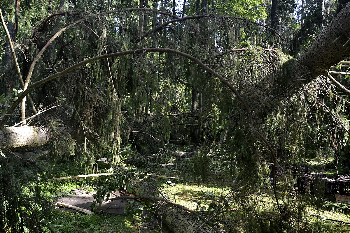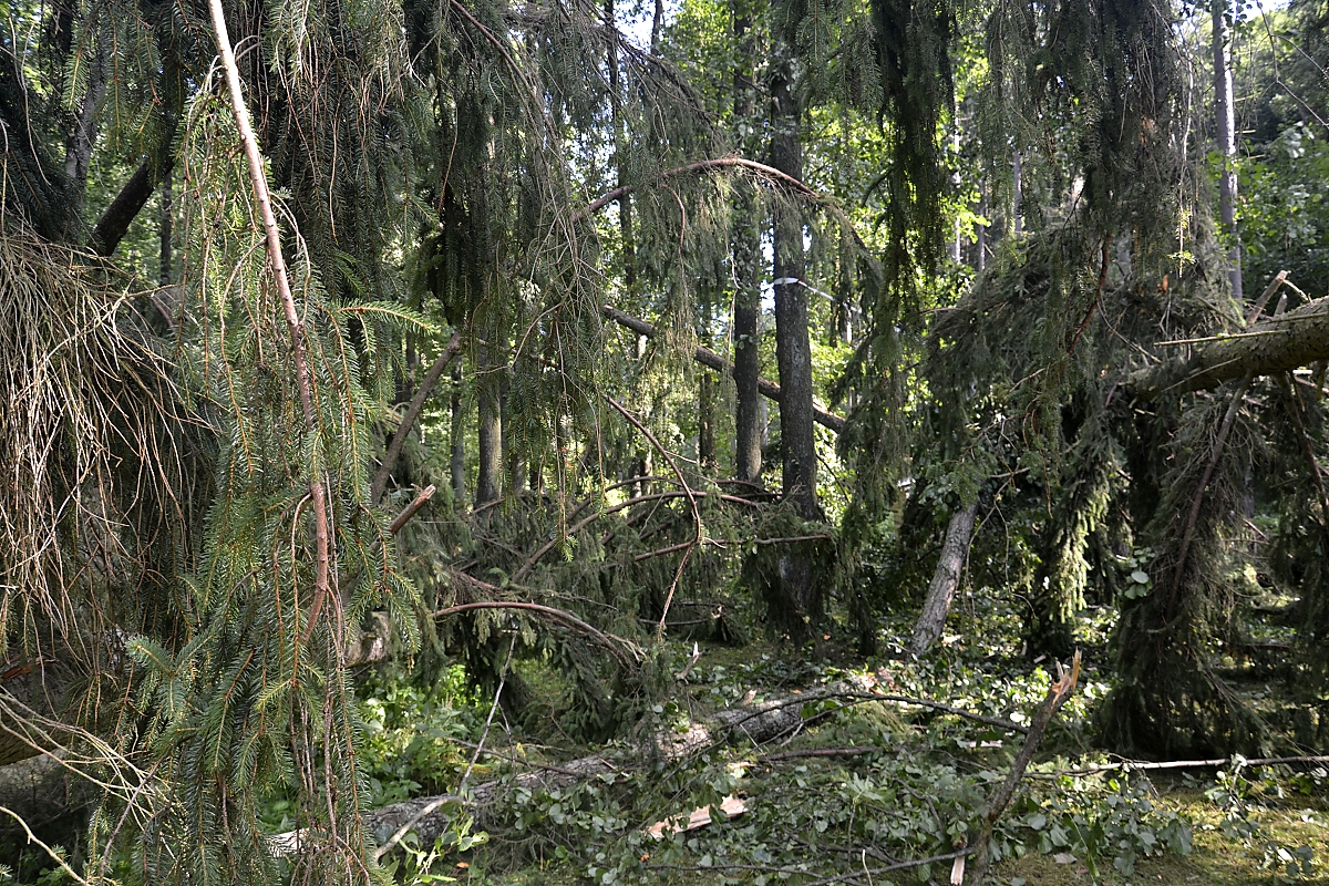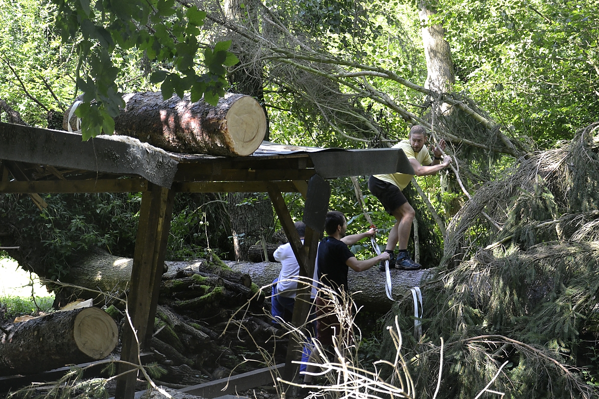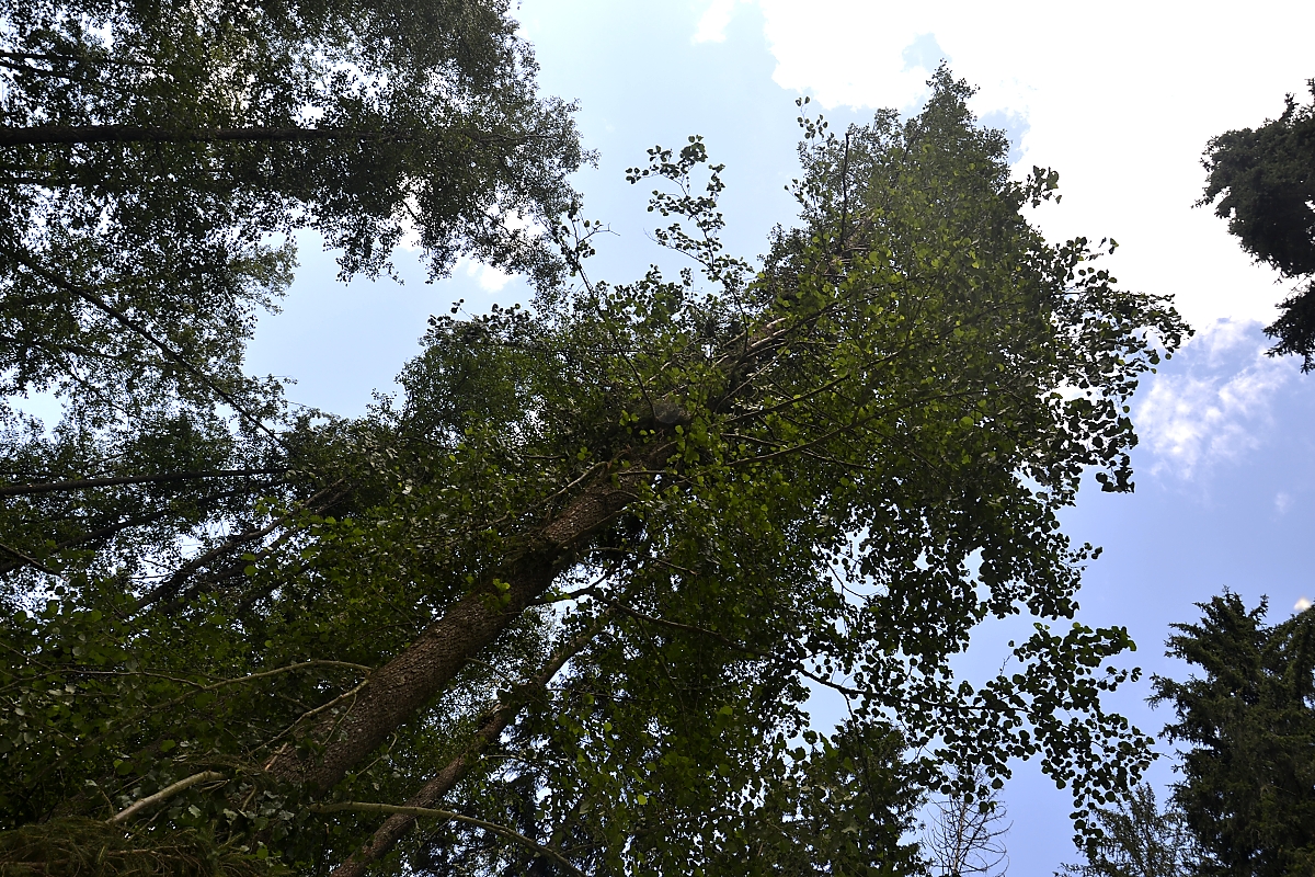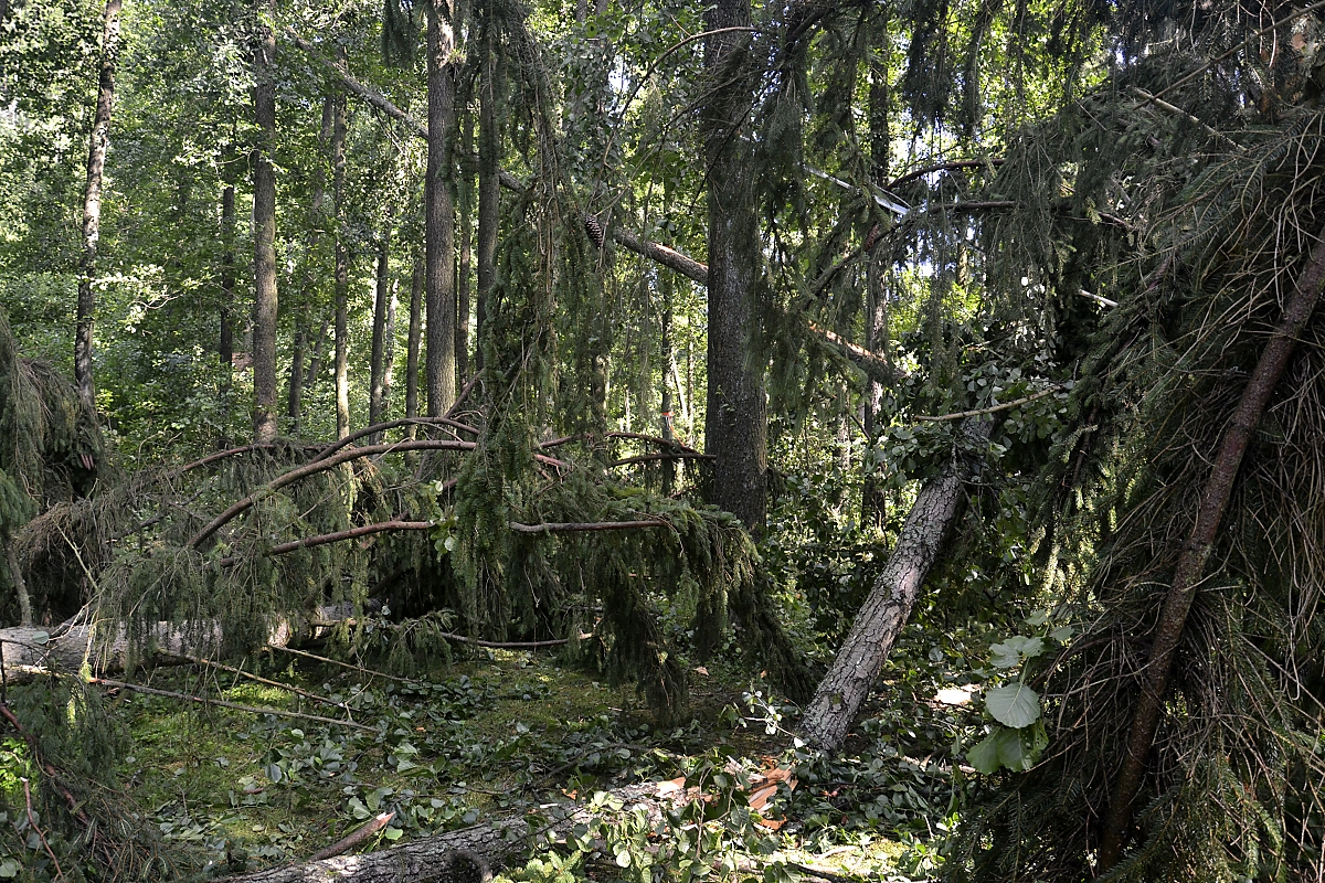 Záběry pořízené bezprostředně po několika minutové větrné smršti, doprovázené vodní clonou, vypadají hrůzně, ale ne, nelekejte se! „Živá síla“ nebyla tknuta. Osazenstvo tábora ušetřeno! (I když poslední čtyři táborníci, odvazující gondolu z lanovky, prchali z lesa v okamžiku, kdy kolem nich praskaly kmeny stromů a proti nim se zvedaly koláče kořenových „balů“ stoletých velikánů).