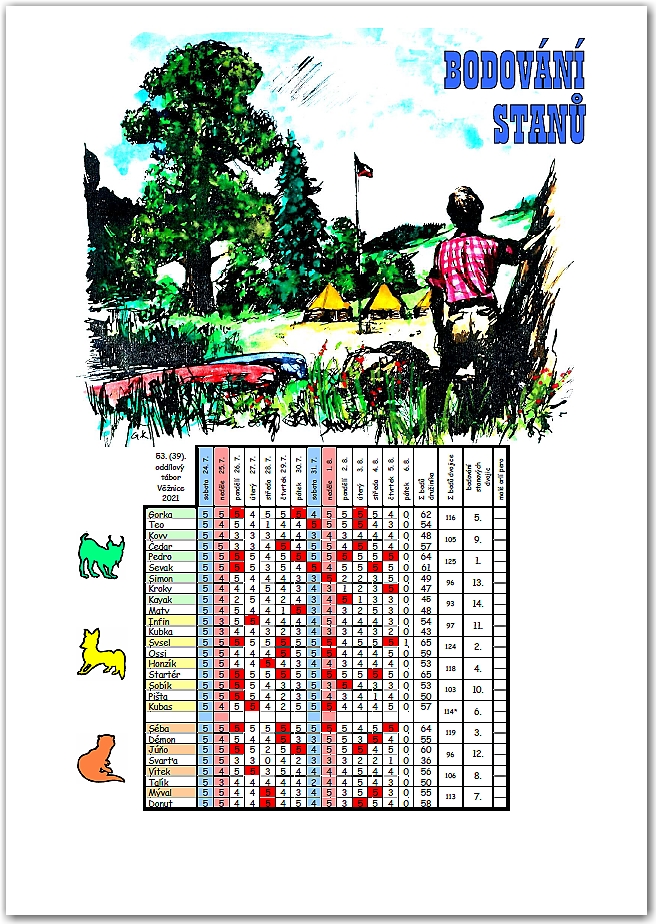 Stejně špatná, stejně nejistá, snad ještě horší než ta loňská, ale už ne tak děsivá. Strach z „koronakrysy“ je daleko menší, ne tak strach z různých vládních prohlášení a nařízení hygieniků. Jeden tábor uzavřen, ten zrušen, tam zasahovali zdravotníci a jinde i hasiči. Obraz rozdrcených stanových podsad padlými stromy v důsledku řádění nepředvídatelného počasí, nám radosti v přípravě tábora nikterak nepřidal.