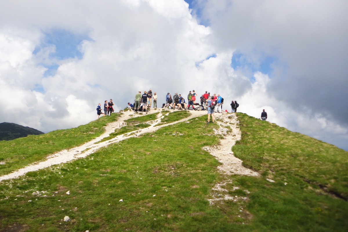 Blíží se devátá hodina. Páskujeme se ve vestibulu a kabinky lanovky nás hltají a vyváží nahoru. Nádherný rozhled, slunce se sice občas schová za hradbu mraků, ale po chvíli opět vykoukne. Dole pod lanovou dráhou se několik zoufalců snaží dosáhnout sedla pěšky. Jejich mokrá trika svědčí o tom, že stoupání je přímo vražedné. Vzpomněl jsem si na slova, že jednodušší je vylézt nahoru pěšky a dolů se svézt lanovkou. Protože jsem už několikrát kráčel po hřebeni, vím, že je to pravda.