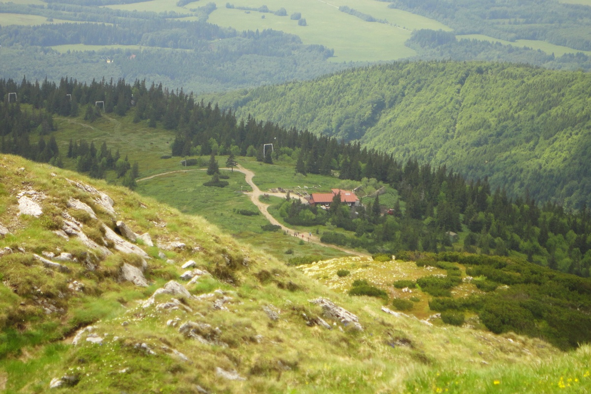 Na horné stanici nás kabina lanovky vyplivla. Shromažďujeme se na terase. Pouze Fili neodolal a na nástup přichází s klasem vařené kukuřice. Krátké zahájení expedice, a zvolna se rozcházíme směrem k nejvyššímu bodu Malé Fatry. Je to Veľký Fatrový Kriváň 1 708 m/m. Úmyslně používám starý název, který mi jako třináctiletému žáku učaroval. To když jsem po sestupu, ze sedla Medziholie, v bufetu ve Štefanové pátral po tom, kde že jsme to vlastně byli. (Mimochodem, ta mapa tam visí dodnes!)