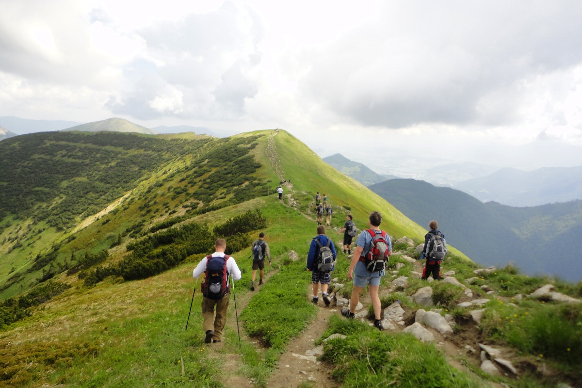 Hřeben bude místy úplně ostrý a strmý, třeba na Stěnách mezi Poľudňovým Grúněm a Chlebem. Cestou překonáš mnohatisímetrové převýšení a večer padneš se skleněnýma očima pod Starým hradem na břehu Váhu do spacáku a celou noc nebudeš moci usnout, v nohách ti bude škubat únavou...“