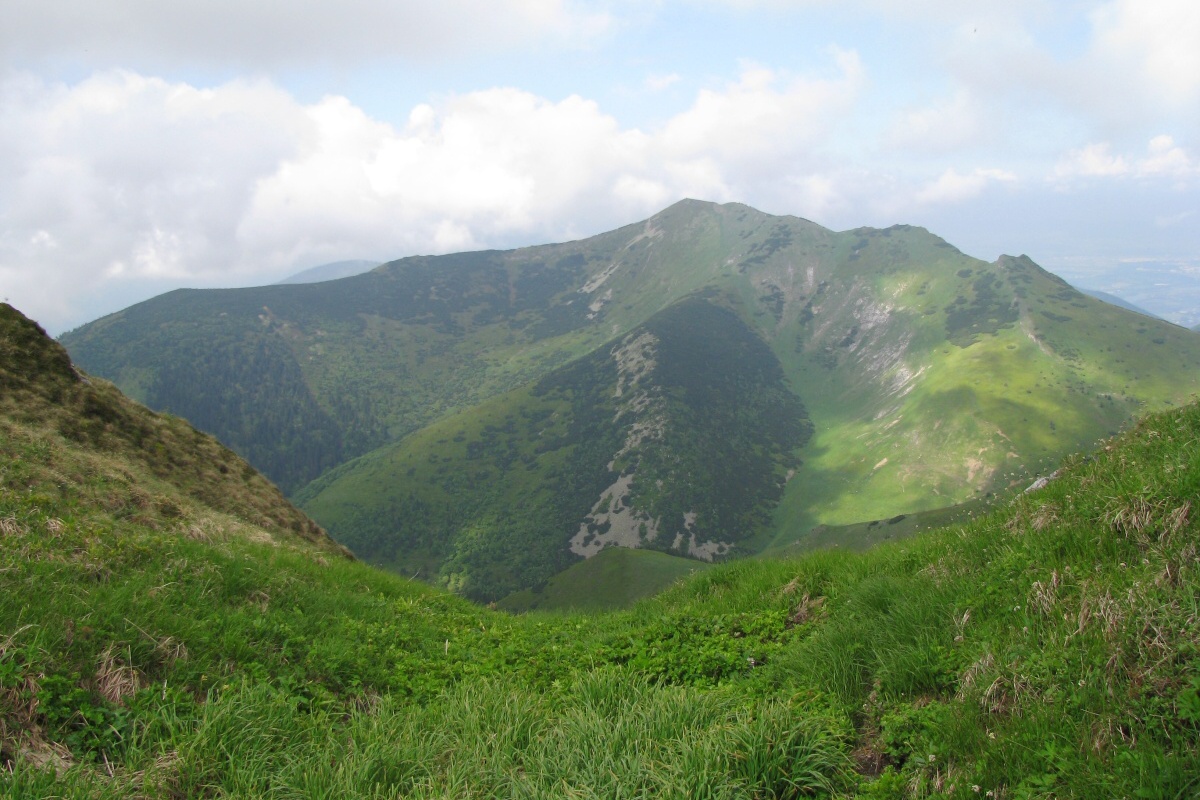 Dvě a půl hodiny nám trvala cesta z Kriváňa až sem, na Poľudňový Grúň, kde uleháme do trávy. Před námi jsou skalní monumenty Veľkého Rozsutca a Skalného mesta. To je už několik desítek let uzavřeno. Vpravo se vypíná chrbát Stohu. Celá Fatra se dělí na dvě části: Fatranské Vetrné hole a Lúčanské hole – známější pod jménem Martinské hole. Skalnaté je pouze severní část. Je to spletenec dolomitů a vápenců.