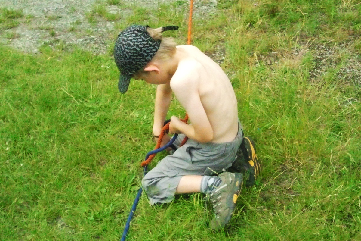 Je dusno, a těžce se nám stoupá po modré značce do kopce, přes louky a hlohové háje pod Váňův kámen. Už slyšíme cinkání karabin, po vápencovém skalisku se soukají lezci nahoru. Odhazujeme loapy do trávy a tři družiníci ke mně jdou, aby vyslechli zprávu. Tu musí svým kamarádům přetlumočit, ale slova nepoužít. Maně jsem si vzpomněl, kdy v roce 1987 Kajman své družině Lišáků předával posuňky poselství: „Horolezec na skále má červené lano.“ Teď, úplně stejnou zprávu, tlumočí družině Vyder jeho syn Šimi. A ten horolezec na té skále, má opravdu červené lano.