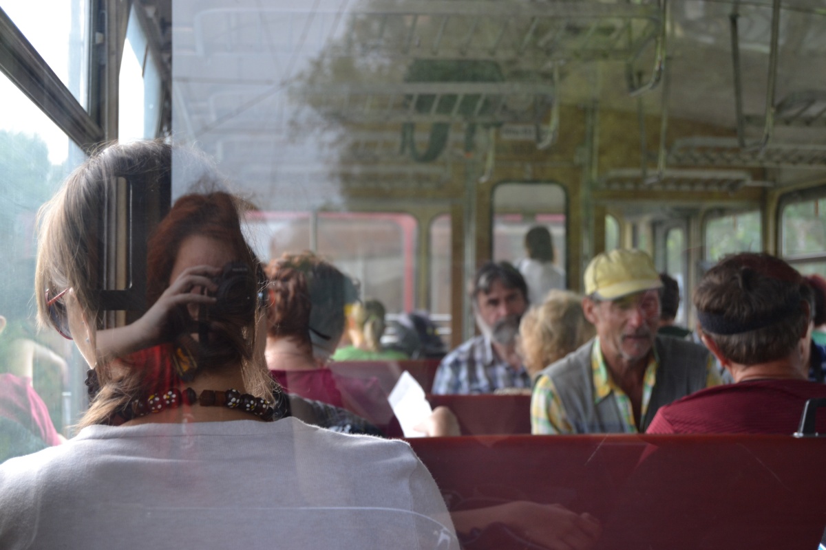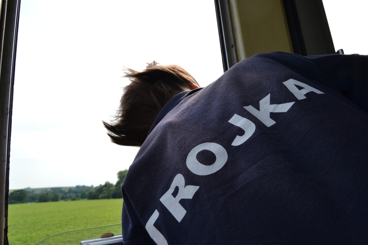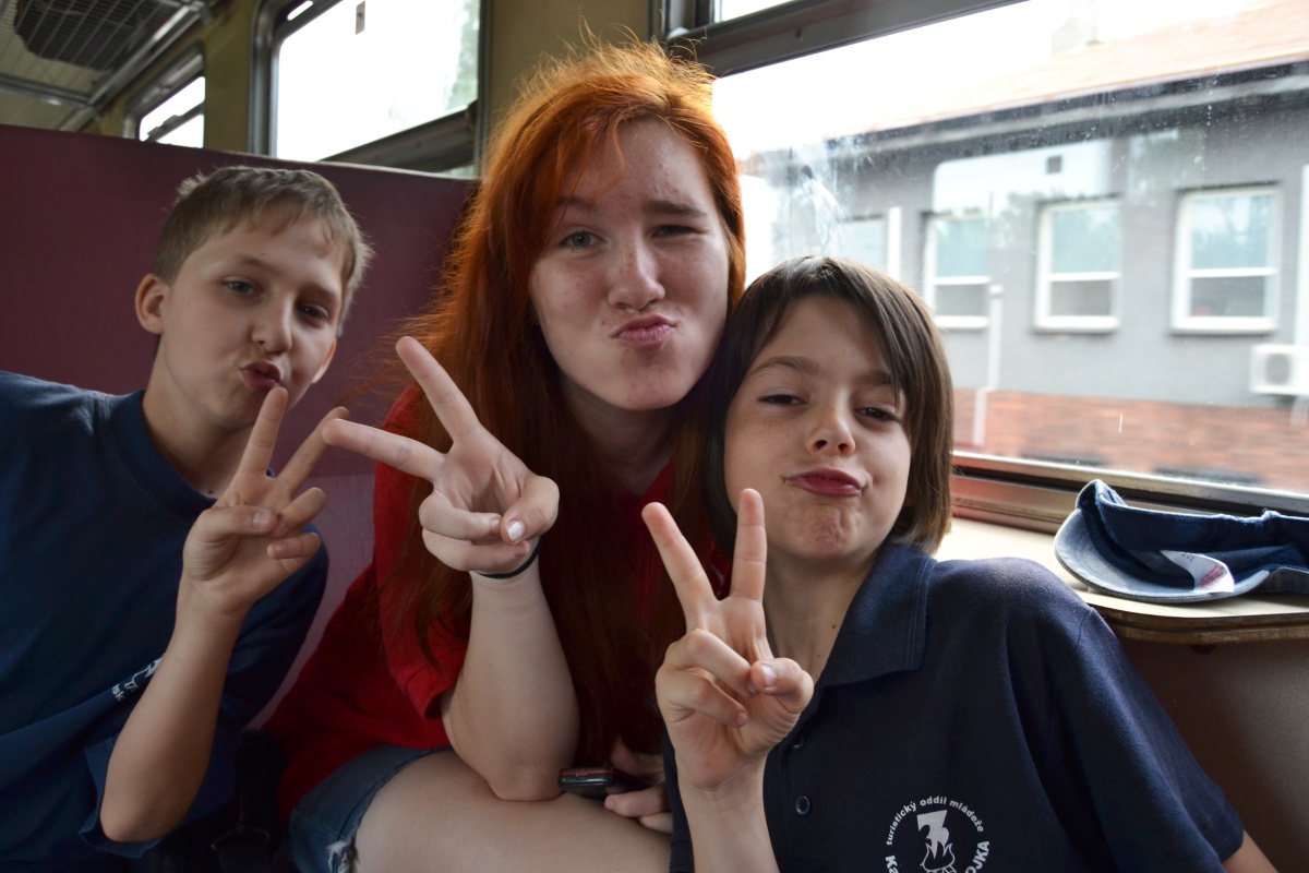 Tak, nejprve jsme si vychutnali jízdu ve „slonovi“, z Bohumína se vezeme „tornádem"*. A teď sedíme v přívěšáků osmsetdesítky. Vzadu, pěkně na lavičce chodbičky, okna otevřené a čekáme. Čekáme na přípoj od Brna. Lála má nový fotoaparát a zběsile fotí. Třísku, Jacka a další ztepilé zjevy a nebo úplně cizí lidi – posunovače, pasažéry. Brňák je tu a my můžeme vyrazit. Ploužíme se lašským podhůřím, přes Příbor. Lidi vystupují a jiní nastupují. Sluníčko se chovává za mraky. I Trúba je schovaná za Bílou horou. Ne, na rozhlednu nepůjdeme.