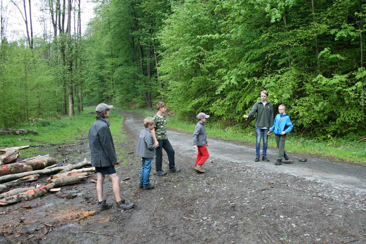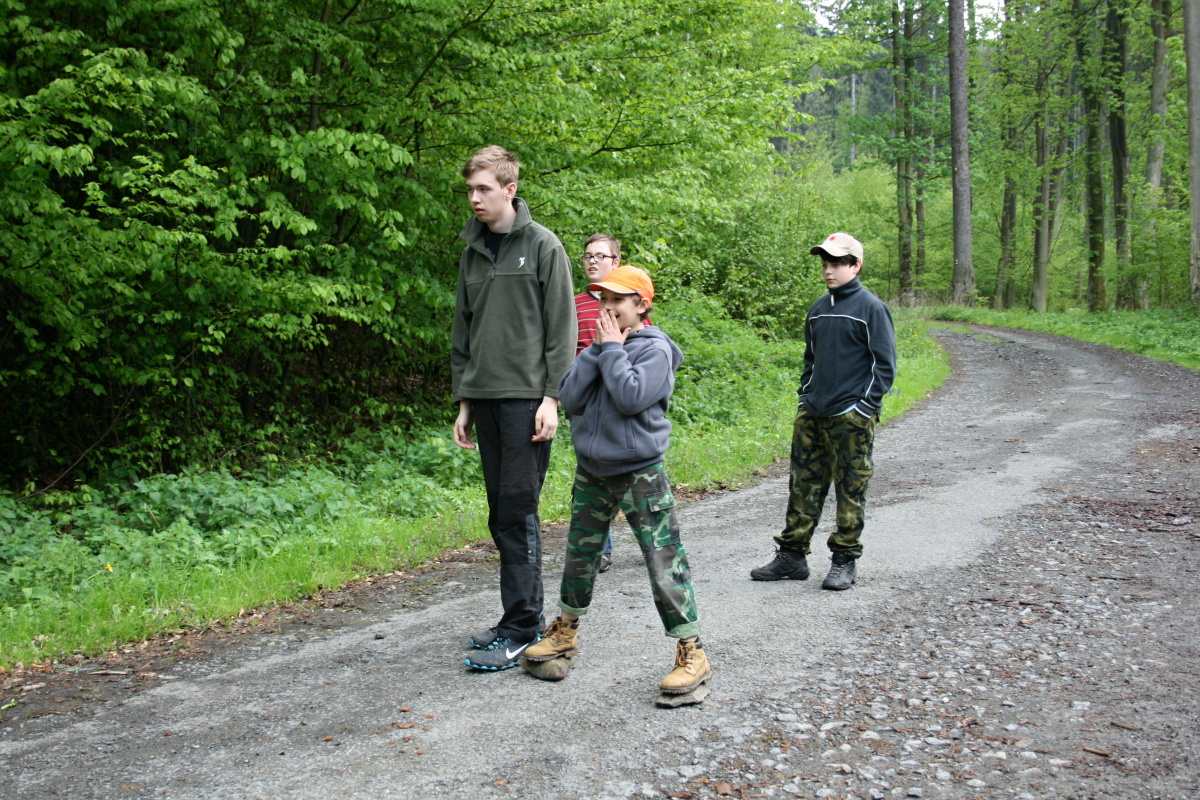 terénní kimovka - barevné lístky s čísly jsou rozmístěny na cestě od Horní propustky na Hamerky, kam také poté míříme (Rysi udělali chybu u čtvrtého číla - Mink, Vydry u devátého - Nadík)