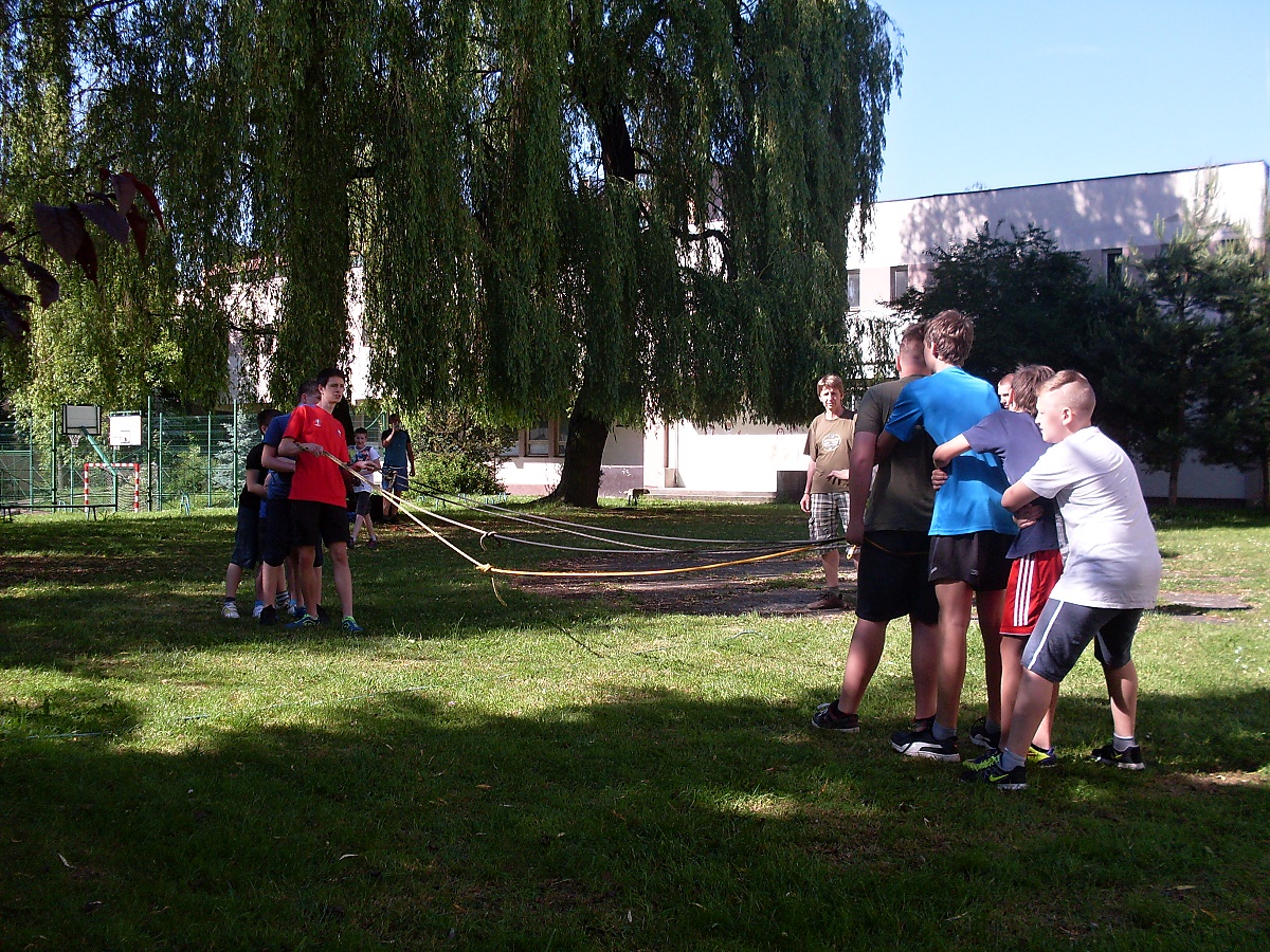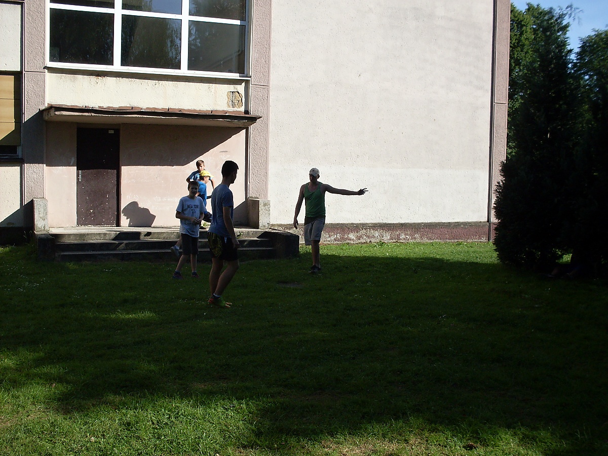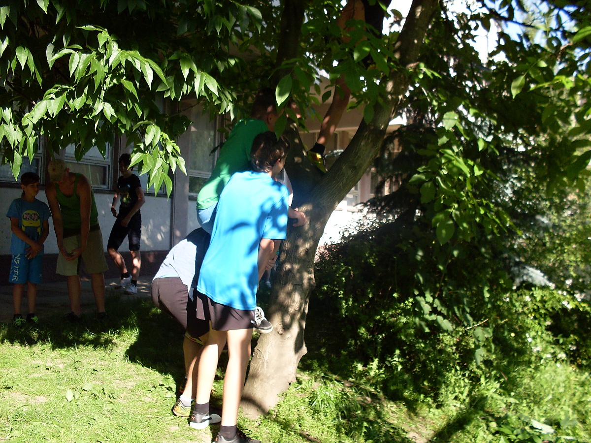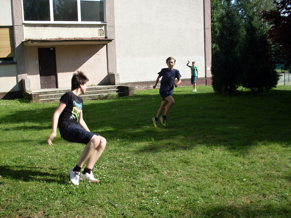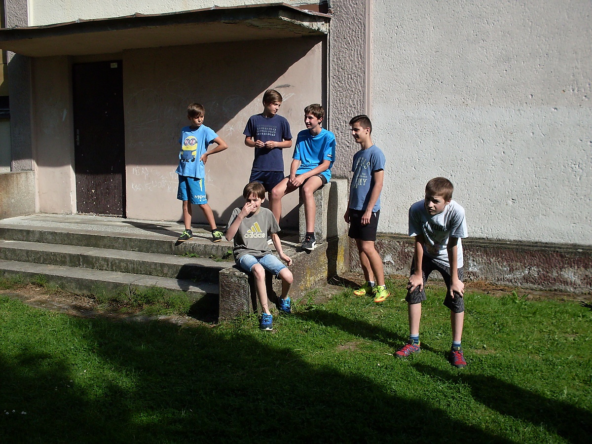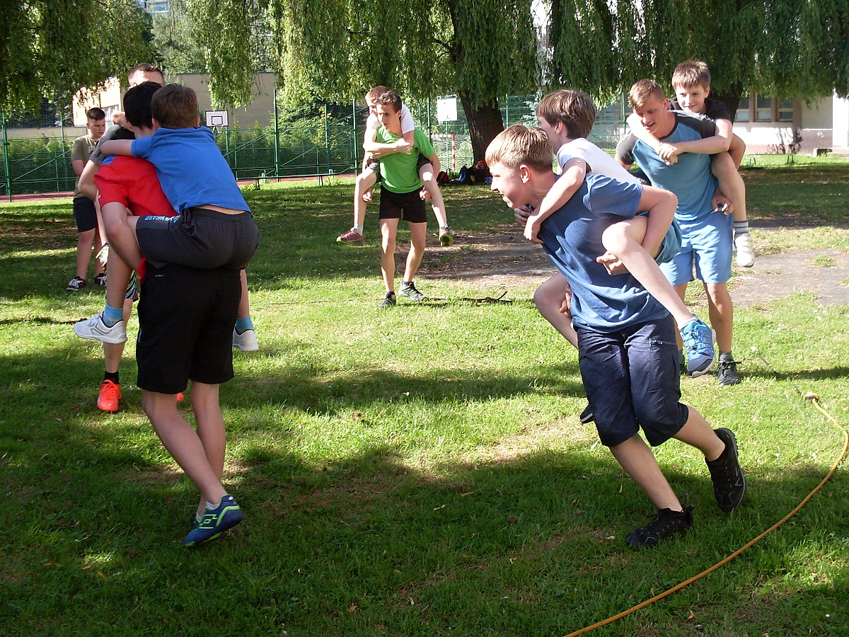 Je nás totiž méně než posledně. Později sice přijel „poškolák“ Vendy, ale stále nás je méně než při první části jarního RODEA. Jak je možné, že nezúčastnění (na smrt nemocní jsou omluveni), nechali svoji družinu na holičkách? Kromě Vítka, co přinesl přihlášku na tábor, se nikdo další z podniku neomluvil. Co nám zbývá? Odehrát měření sil družin v počtu dvanáct. Je strašlivé horko!