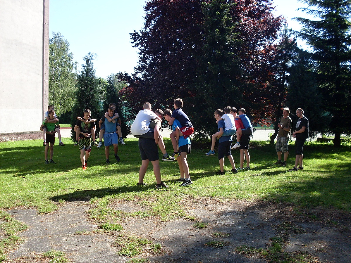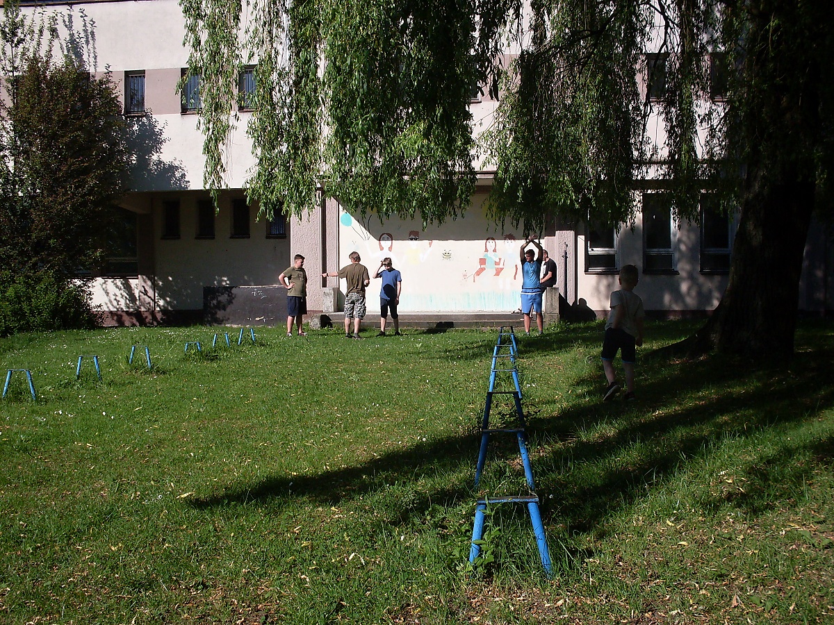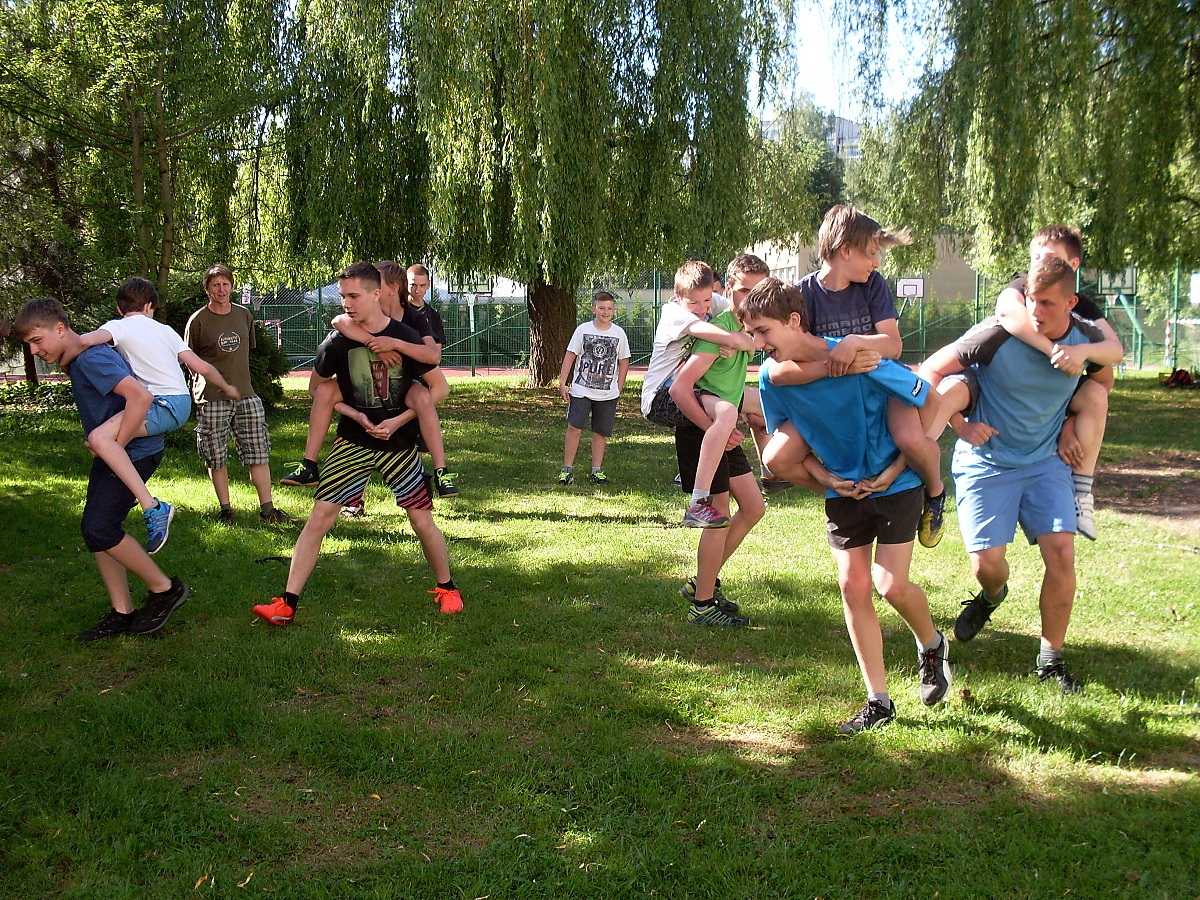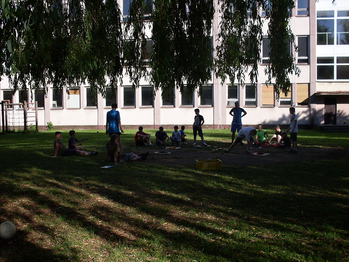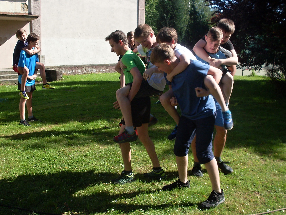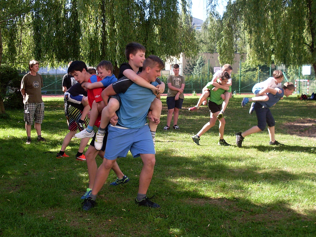Je nás totiž méně než posledně. Později sice přijel „poškolák“ Vendy, ale stále nás je méně než při první části jarního RODEA. Jak je možné, že nezúčastnění (na smrt nemocní jsou omluveni), nechali svoji družinu na holičkách? Kromě Vítka, co přinesl přihlášku na tábor, se nikdo další z podniku neomluvil. Co nám zbývá? Odehrát měření sil družin v počtu dvanáct. Je strašlivé horko!