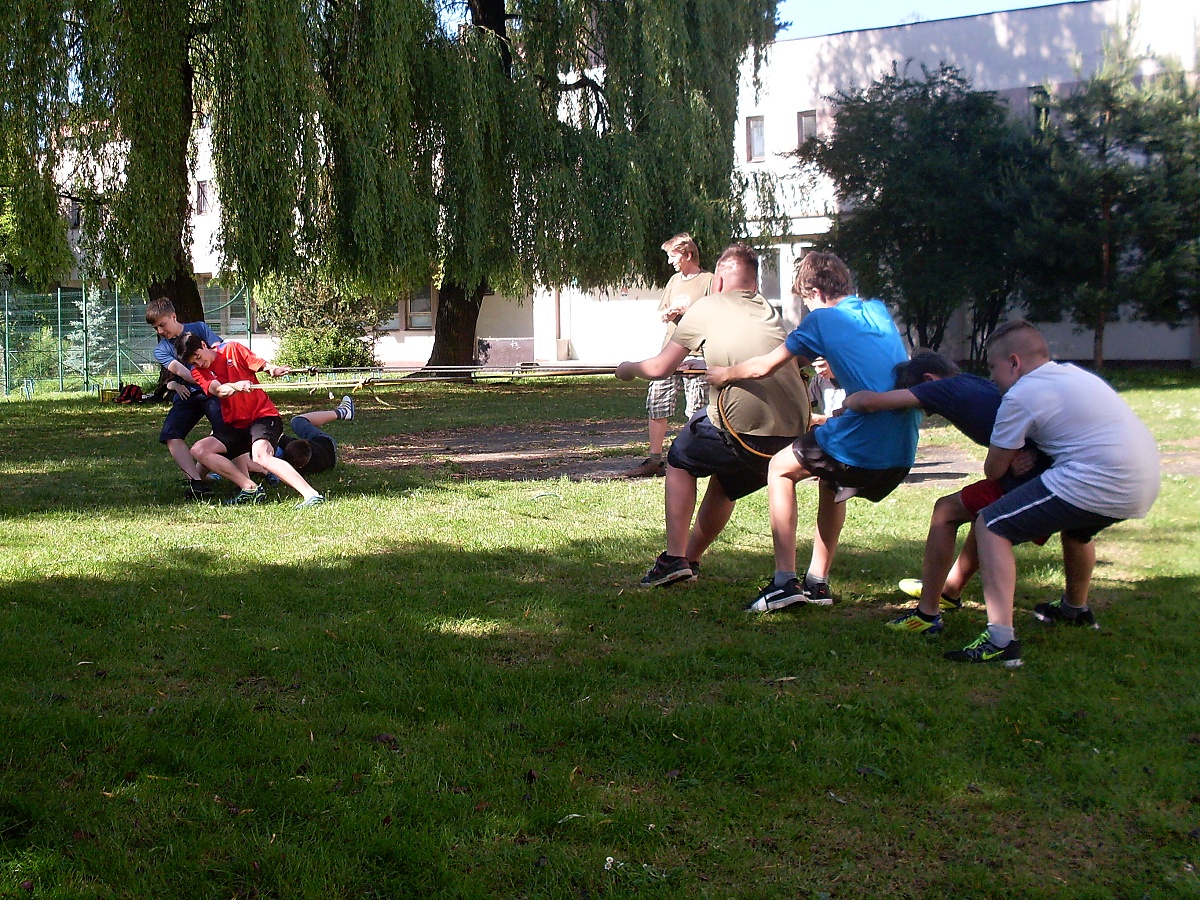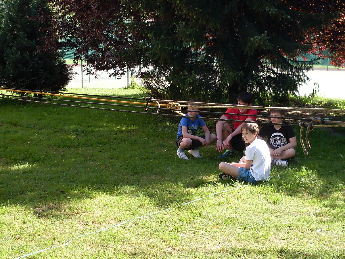 Vydry zacvičili i s Rysy. Ti dali prozíravě za lasa „traktora“ Shreka a prvním volným mužem se stává Jack. Netahá za boky Shreka, ale chytá se las. Rysové začali dokonce Vydry přetahovat, ale vzápětí se utrhává Špejlík a už se válí se Sébou po zemi. A Vydry radostně zvedají ruce. Rysové nakonec přetahují Lišáky a je dobojováno. Rozplétáváme uzly. Bude následovat kombinované uzlování. Lišáci však nemají dostatek las. Jsme nuceni běžet pouze ve dvou dráhách. Fotříkovi došlo, že by nám mohl uvolnit lavičku.