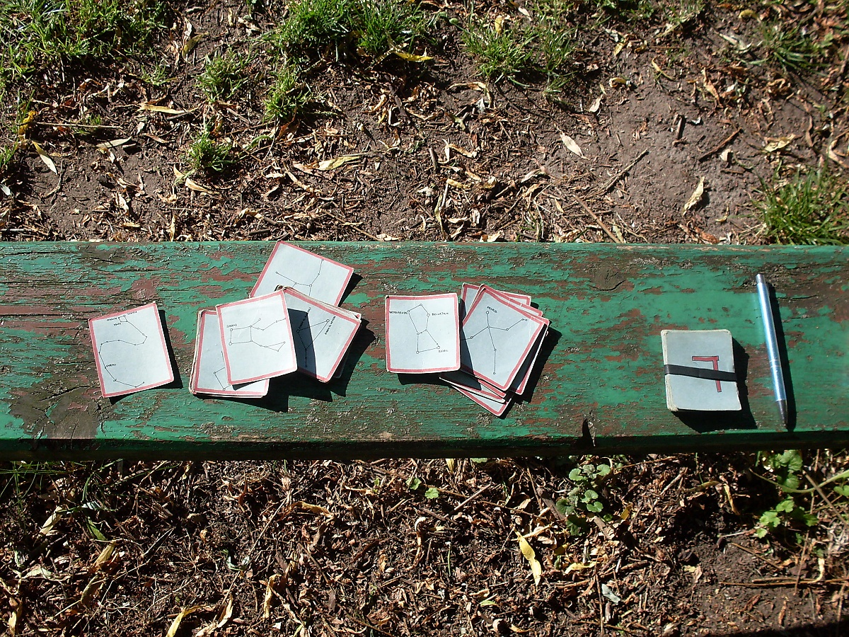 Závod souhvězdí se docela vydařil, ačkoliv jsem ho nijak nepromýšlel. Při zaznění názvu vbíhají do kruhu tři hledači. Ten, který si myslí, že našel, mi kartičku ukáže. Pokud má pravdu, získává pro družinu dva body. Ostatní dva hráči berou jiné souhvězdí o němž si myslí, že ho družina na závěr správně určí. Rysové dva body, Lišáci šest, Vydry třináct.