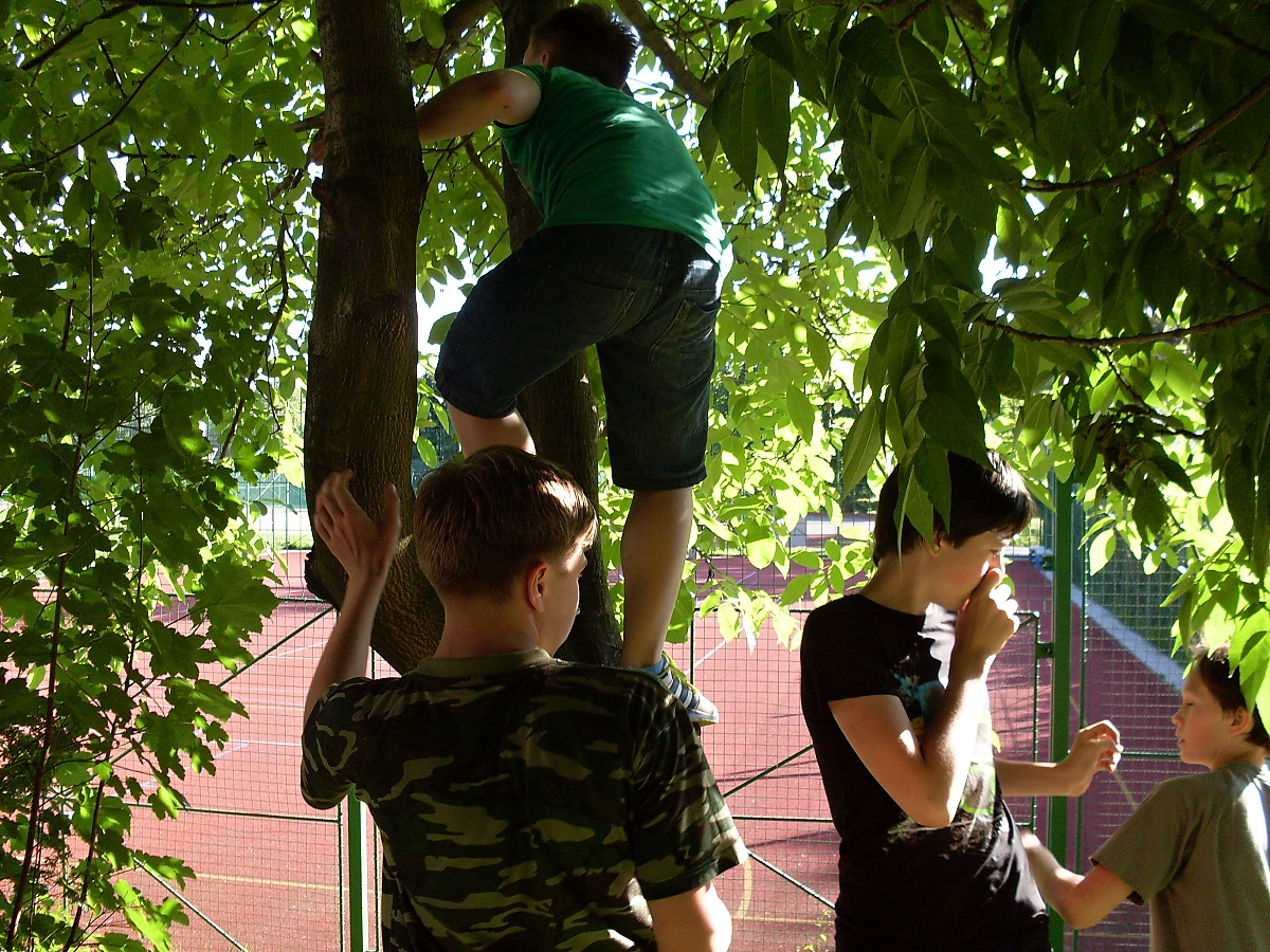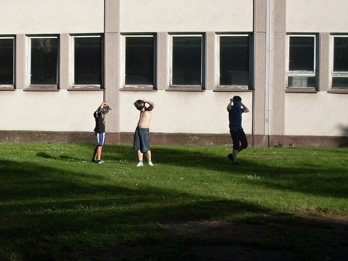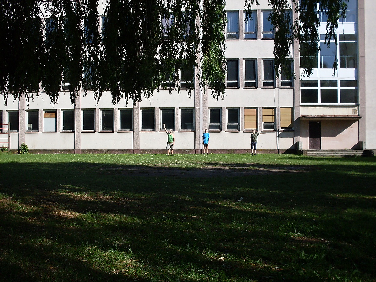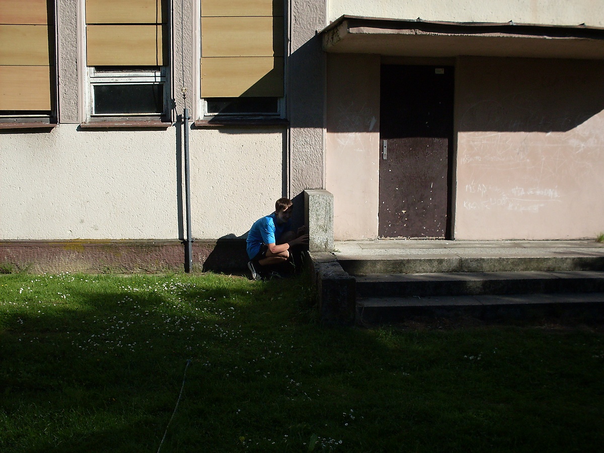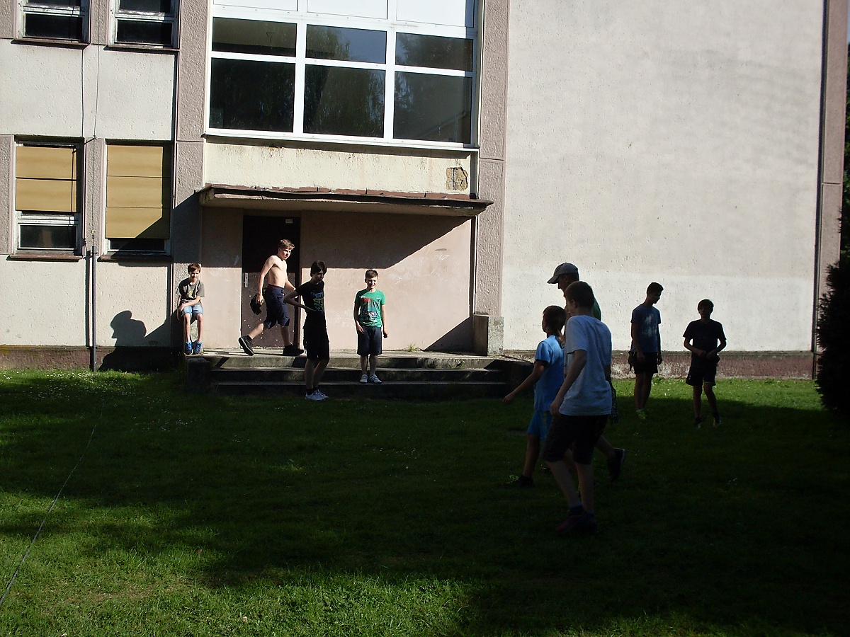 Pod altánem ještě luštíme poslední kolo radistické olympiády a hrneme se do klubovny. Vše uklizeno, vše urovnáno. Propozice k zítřejšímu podniku a rozcházíme se domů. Akorát kdosi jde v keckách, protože boty zůstaly pod lavicí. Zamykáme školu, protože jsme zde sami.