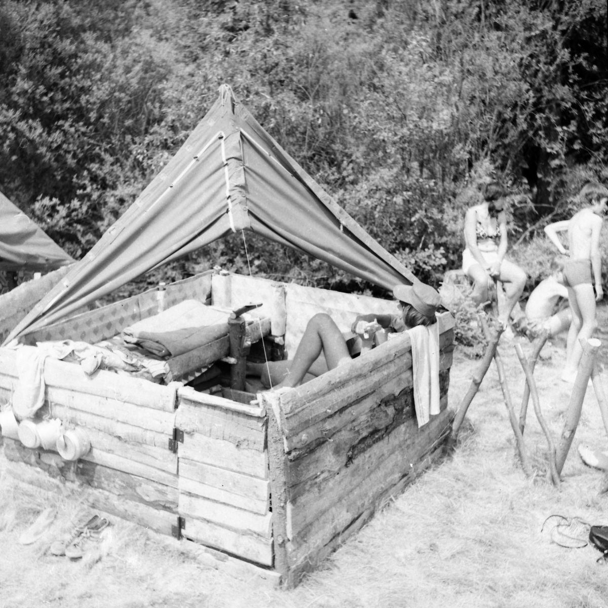 Druhým dopoledním programem bylo dodělávání dveří, které měl jako první Polka a Bobin. (Pátý den na táboře. Dnes stavíme celý tábor za dopoledne).