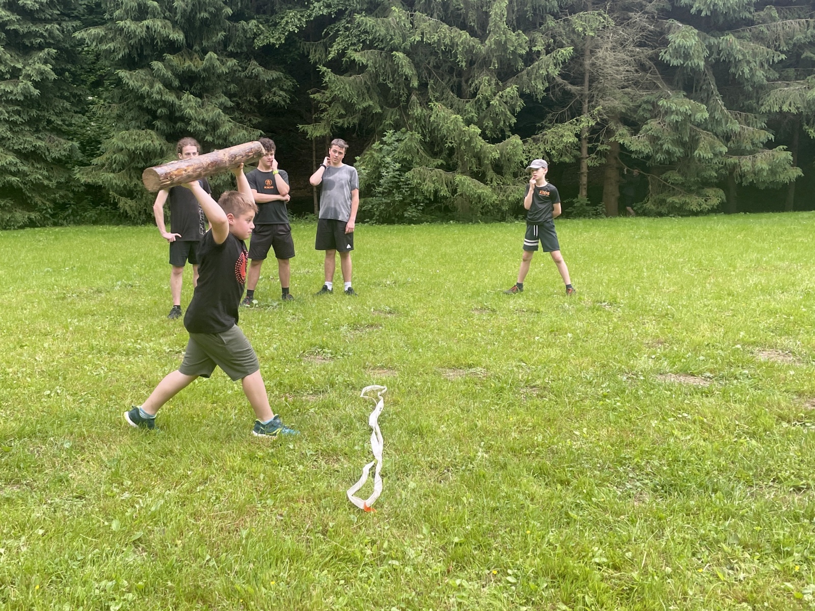 Hod kládou, všichni házejí dvakrát. Rysové mají až nesportovní výhodu, ale co už. Po delší sérii posledních míst konečně vyhrávají.