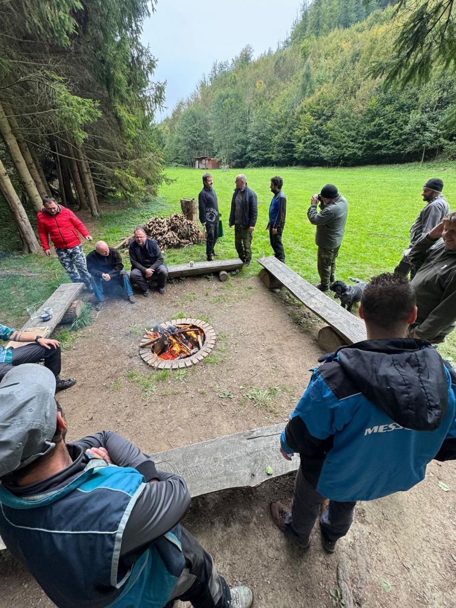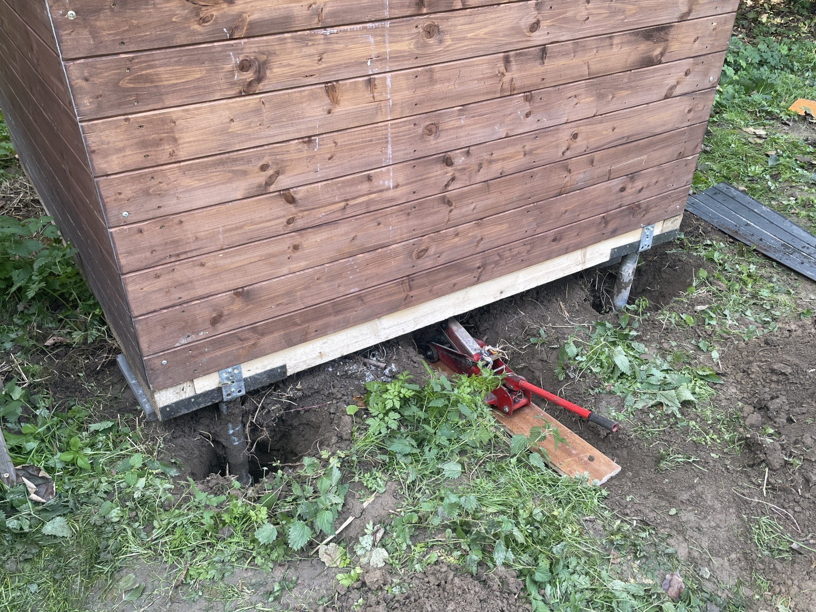 - Maroš, Ursus a pomocný personál opravili saunu. Trochu se nám v měkké půdě naklonila. Přístřešek na podsady vypadá ještě hůře, ale ten můžeme opravit až na táboře. Doufám, že se nám do té doby nesloží jako domeček z karet.