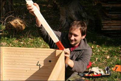 | Patka Pracuje s Šamotem a Ríšou. Jejich pily vrčely od rána až do večera a kdyby jim nedošel benzín, tak by pracovali snad i v noci. Popravdě řečeno v 18:00 už měli dost. Druhý den se jim ještě třepali ruce. A to když se podíváte na ty pracky od Patky, tak to je co říct. Patka věnoval na této akci oddílu 5.000 Kč. Byl tak dojatý, že je s námi po dlouhých letech na horách, že mi v jednom momentě ve slabé chvilce dal i kreditní kartu s PINem. Tak jsem si trochu poplakali. Patka při vzpomínání na to, co s oddílem vše prožil a já protože jsem musel kartu vrátit... |