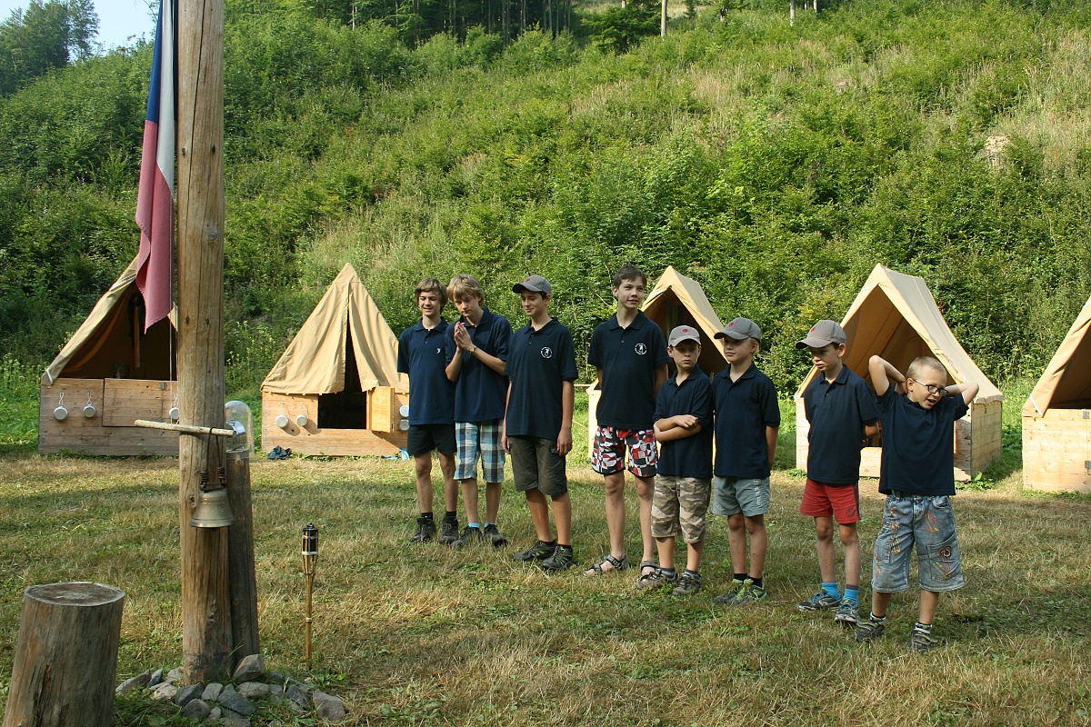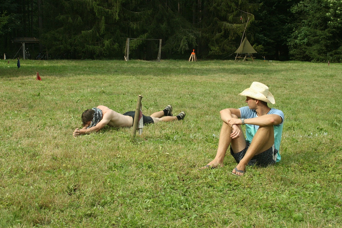 Tábornickou stezku opět vyhrává Sněžka, druhý Tomáš, třetí Tříska, následují Qéčko, Nadík a Dodo. Bezproblémoví hoši. Na rozdíl od Sida, který mne na konci tábora tak vytočil, že dostal ode mne malým esšálkem do hlavy takovou mordu, že mám malou misku dodnes promáčklou (Skypino, promiň!). Shrek skončil na posledním místě díky své nepořádnosti, resp. zapomnětlivosti.